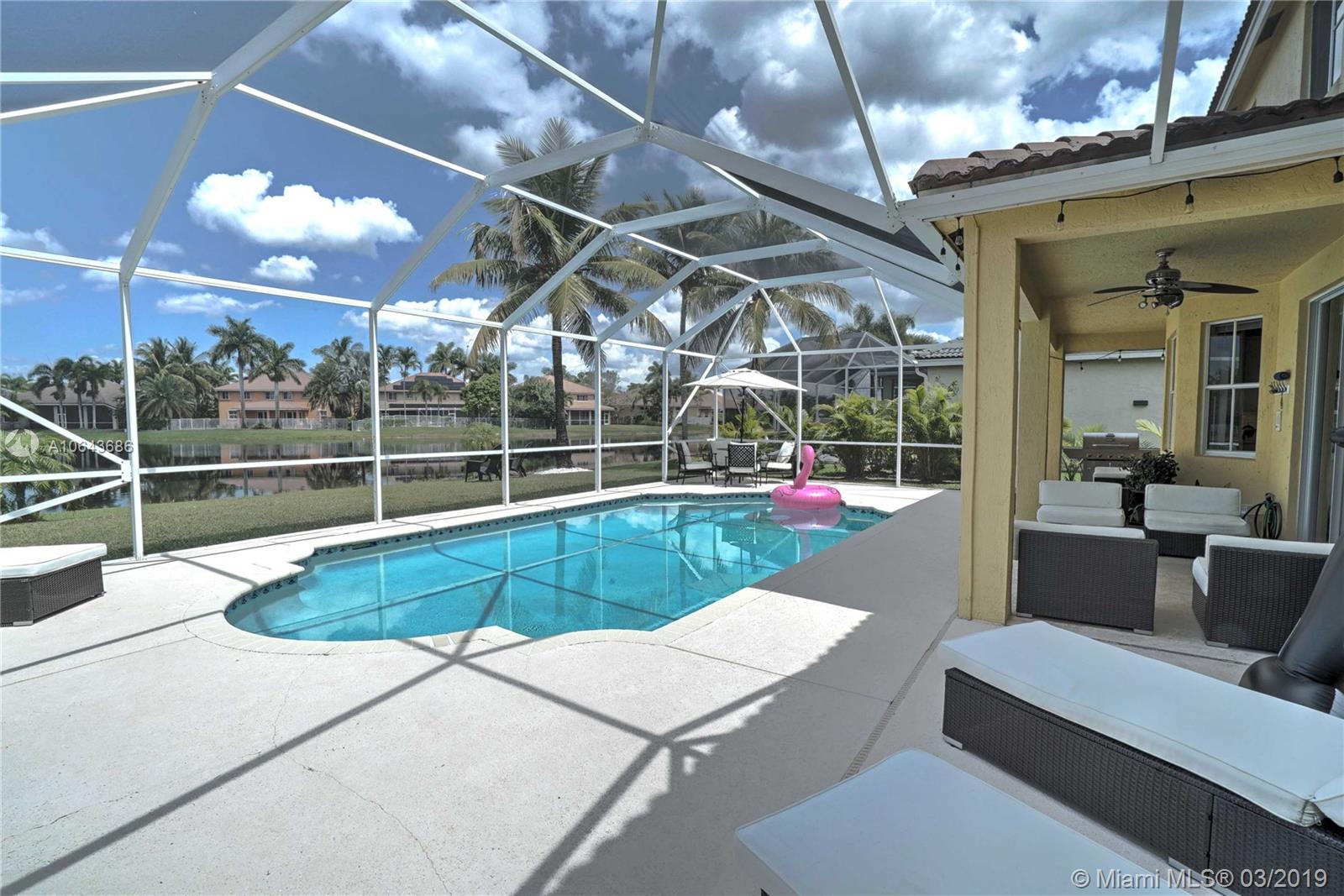 Bright 5 bedrooms 4 bathrooms house with lake and pool. One bedroom and full bathroom on 1st floor. New Kitchen with quartz counter tops and stainless steel appliances & 42" wood cabinets, modern wood floors throughout , upgraded bathrooms. Closets galore. Pool with screened Patio. Gated community with amazing club house, 4 pools, water-slide, mini golf, basketball court, soccer, playground, and more to mention.