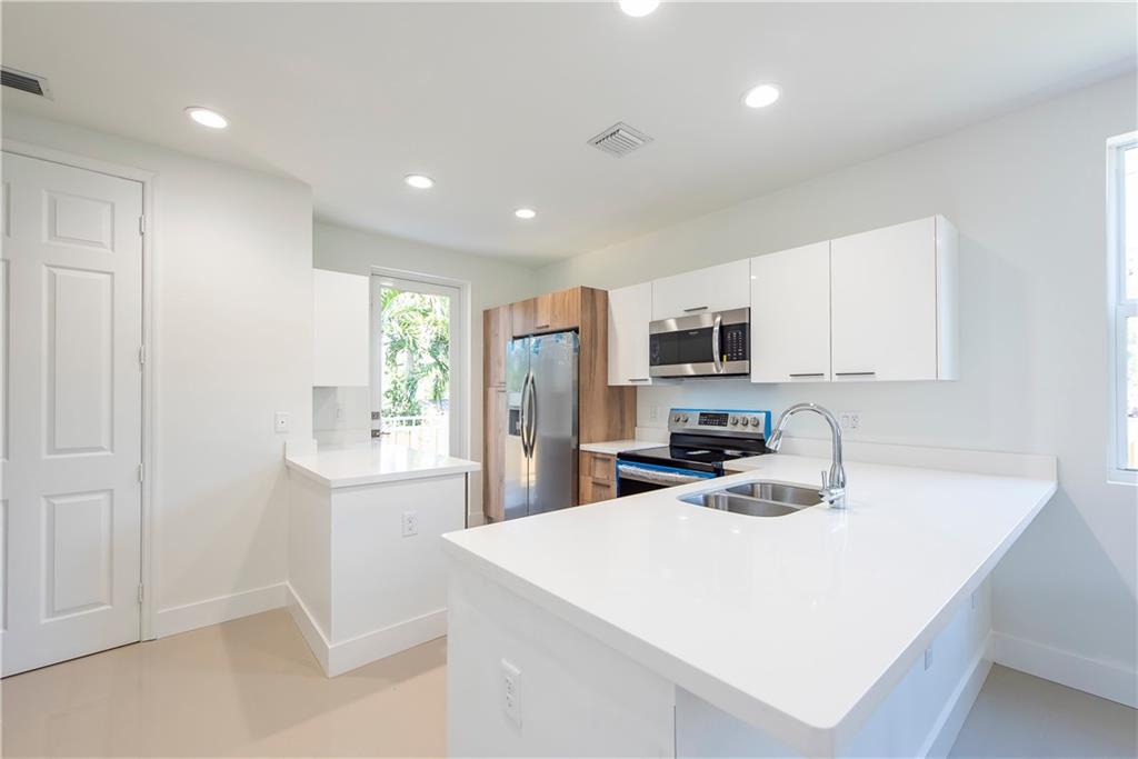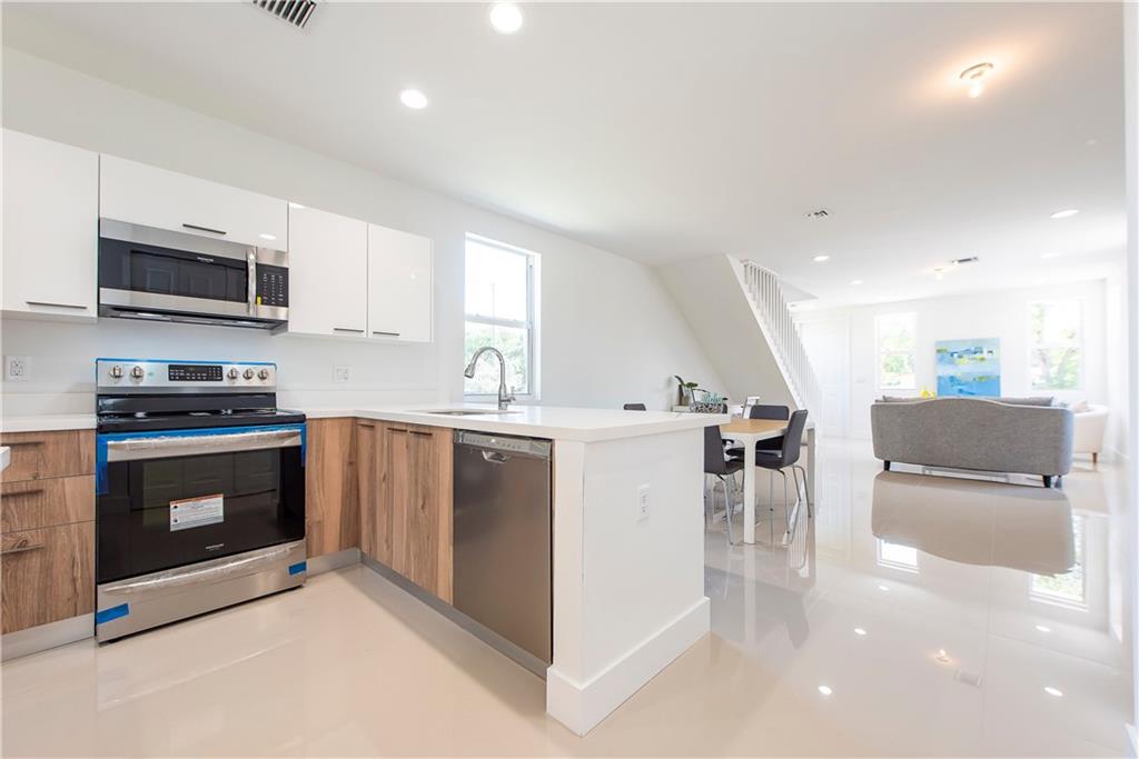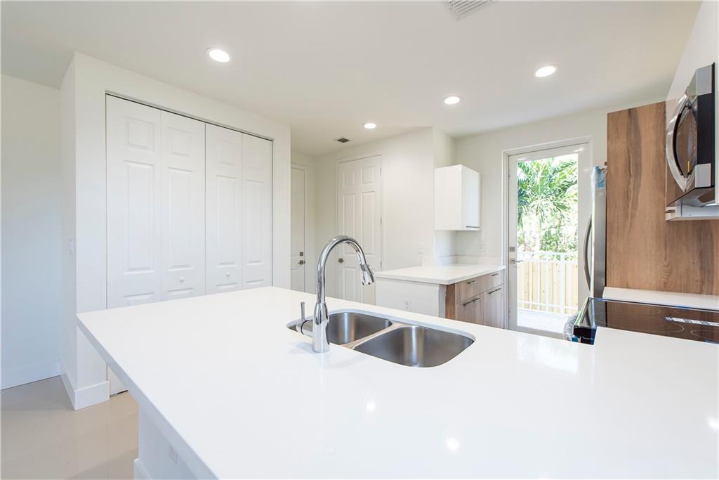 Exceptional value for NEW CONSTRUCTION in the booming community of Edgewood in East Fort Lauderdale! Get ready to move in and enjoy this modern, sun filled townhouse! This townhouse boasts an open floor plan, impact windows and doors, quartz counters, Euro style cabinetry, 9' ceilings on both levels, 24x24 porcelain tile, engineered wood floors, LED lighting, full sized Samsung washer/dryer, an extra deep 1 car garage, your own large private fenced in yard and ample driveway space for guests. The only shared wall is via the garage, so this feels more like a single family home! Fee simple, NO HOA fees, NO restrictions and buyers may qualify with as little as 3% down. Centrally located w/access to major highways, airport, beaches, fine dining and so much more!