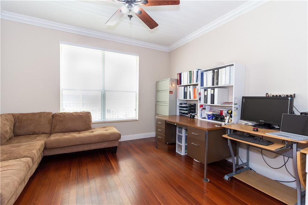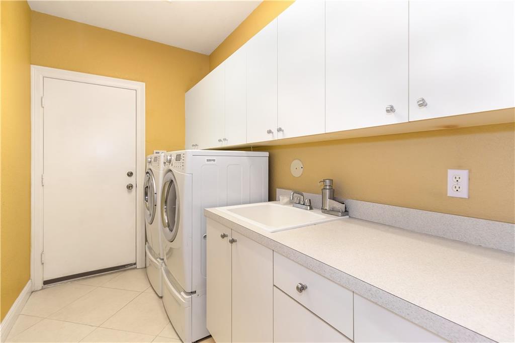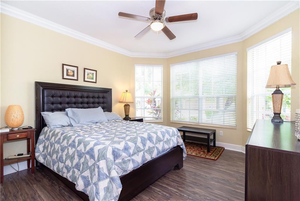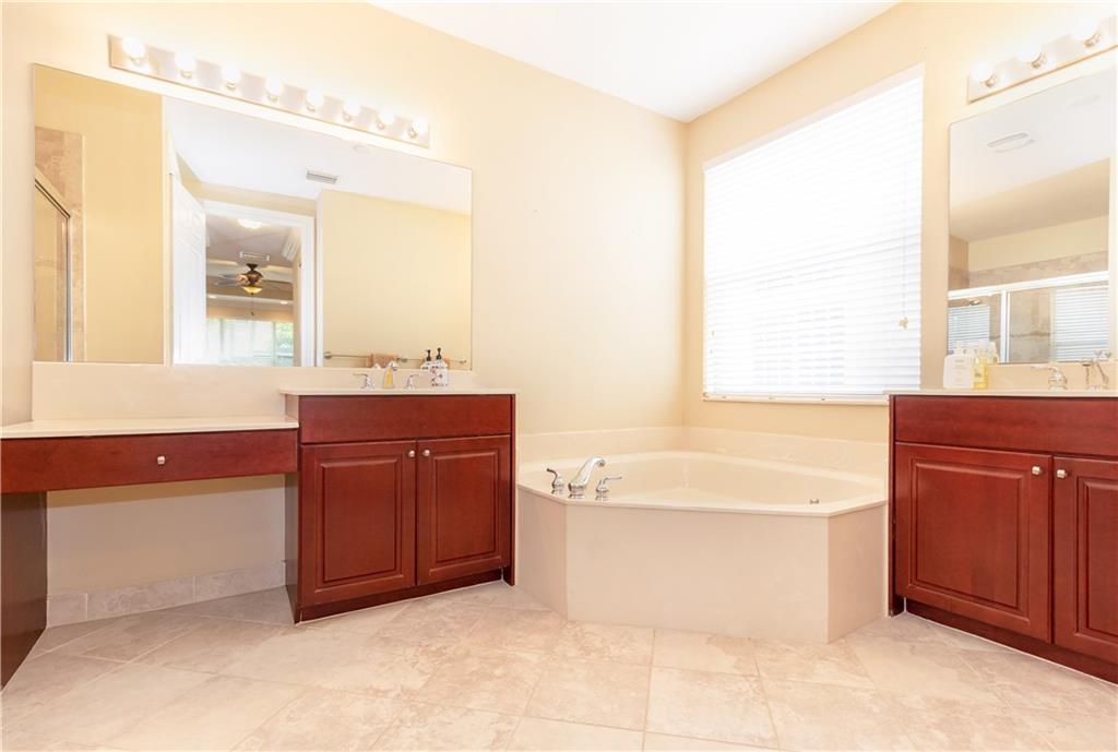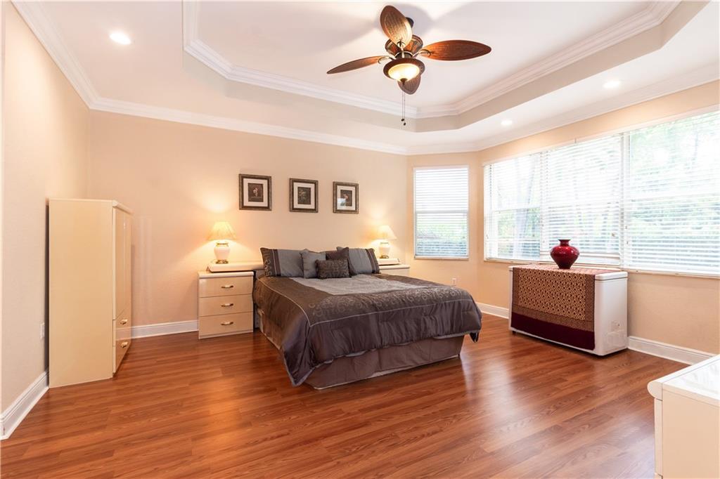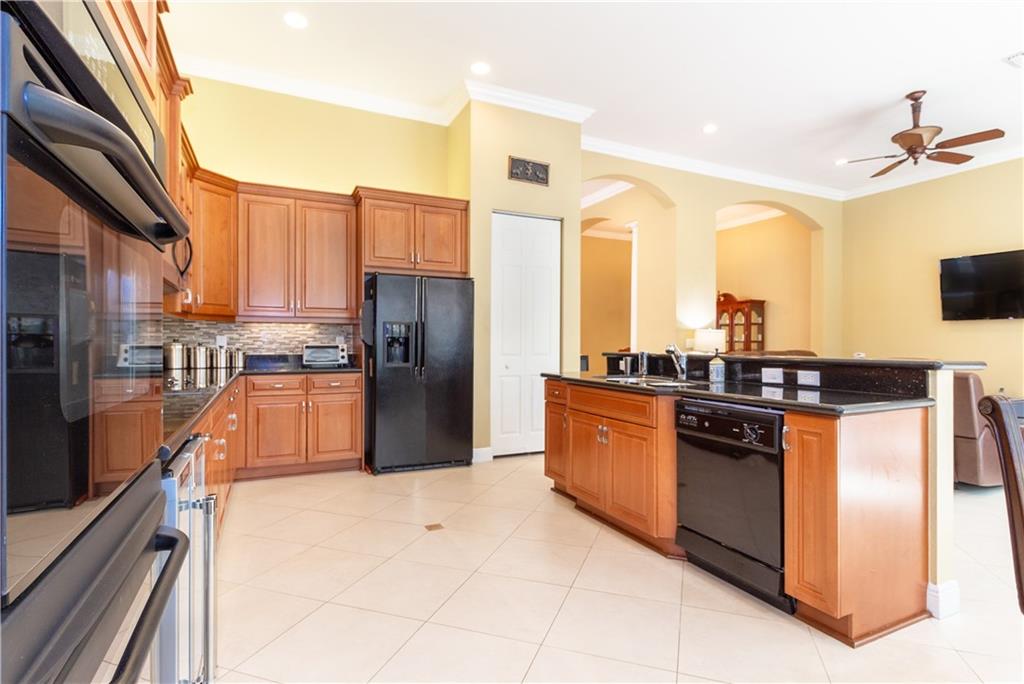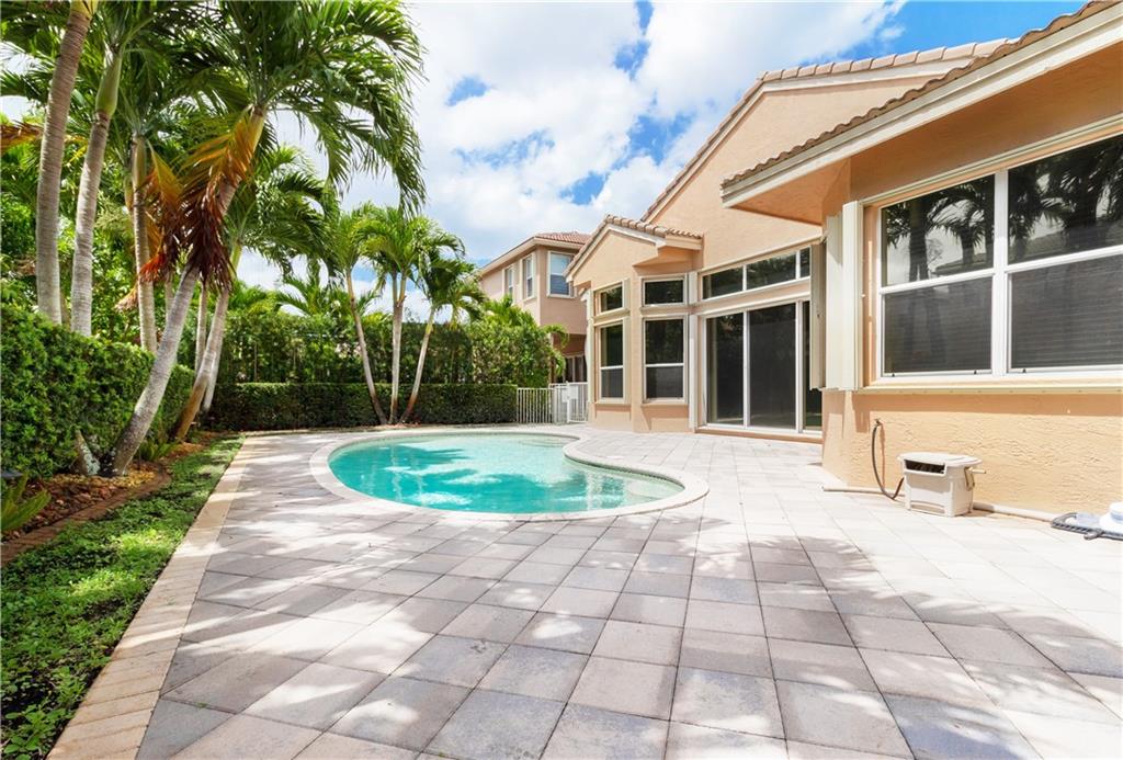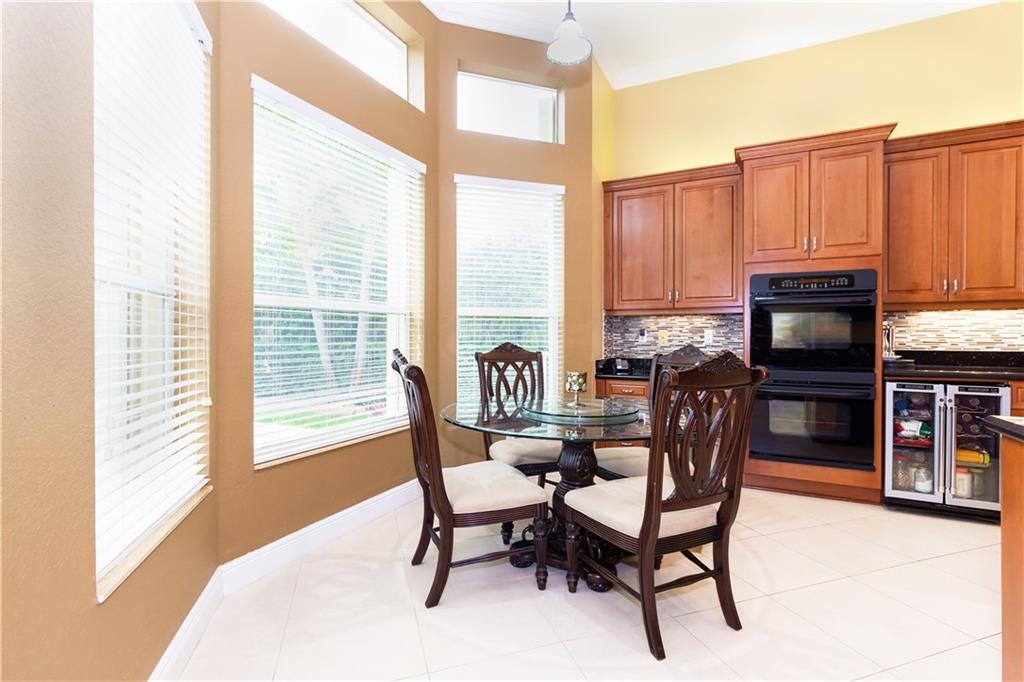 Gorgeous upgraded one story pool home. Large gourmet kitchen with real wood cabinets, granite countertops, double oven, wine cooler, breakfast area and snack bar. Volume ceiling, crown molding, tile flooring in main living areas, wood flooring in bedrooms. Master bedroom has two large walk-in closets w/closet organizers. Large master bath with two vanities, large shower and separate bathtub. Peaceful backyard with free form pool & sitting area. Newer A/C units w/nest thermostats & hot water heater, generator transfer switch recently installed. Accordion shutters, 3 car garage with garage organizer & shelving. Home is completely move in ready!