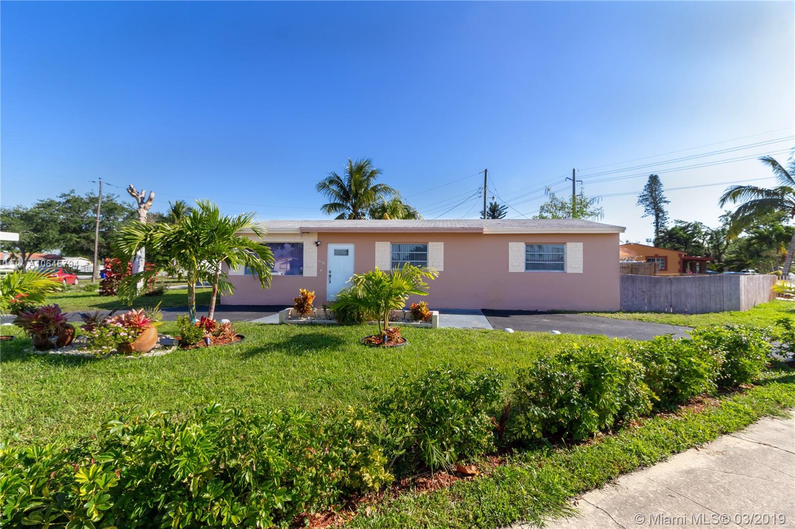 Renovated 3 bed/2 ba corner single family home in Hollywood with beautiful curb appeal. Updates were done less than 20 months ago. This cutie boasts: new kitchen with granite countertop, stainless steel appliances, upgrades laminated flooring, new appliances, new fence, new washer ad dryer and great landscape . Rooms include a family room and a laundry room. Get a massage every time you take a shower in the master bath. Roof is from 2006. Be ready to enjoy the Florida weather outdoors in the new huge covered patio or having family gatherings at your home. Located close to schools, Florida's Turnpike, 15 minutes to Fort Lauderdale airport and 6 miles away from the beach. AS IS condition. Priced to sell.