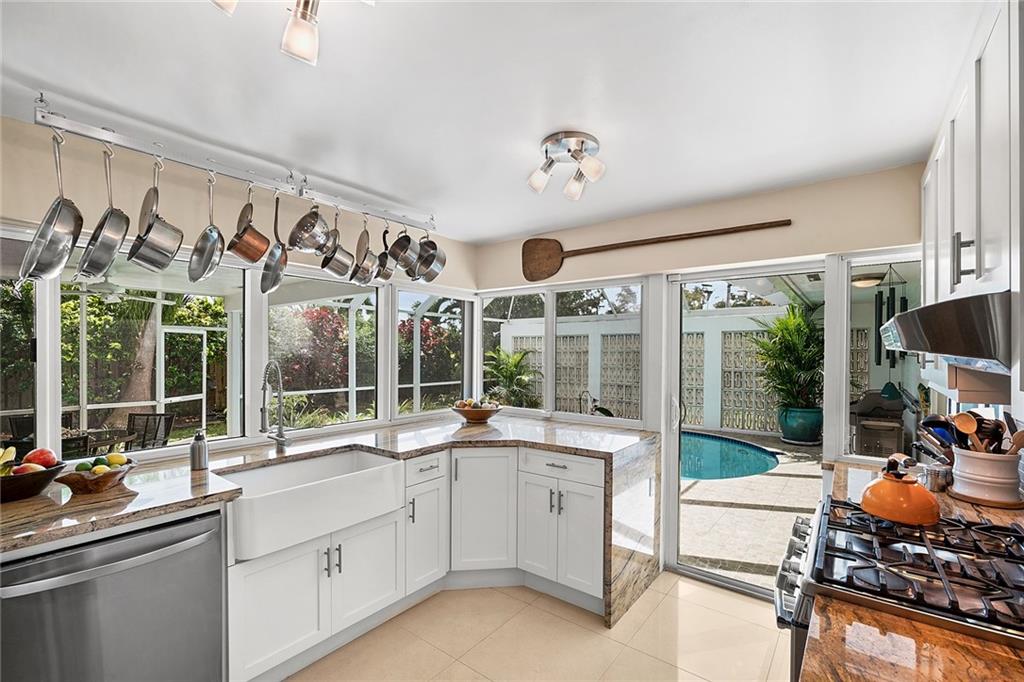 PRICED TO SELL! Beautifully updated Westminster model - the largest of the original Imperial Point designs with nearly 2300 square feet under air and 3000+ square feet under roof! The HUGE living room overlooks the private in-ground pool and features new plantation shutters! The gorgeous new kitchen boasts white cabinetry, gas range, stainless appliances, & granite waterfall design countertops! Enjoy the outdoors rain or shine with the extended roof line over the screened-in lanai. Impact windows and sliders throughout! Both baths recently updated with new vanities and frameless shower enclosures! Three spacious bedrooms each with a walk-in closet! New 5-ton AC & HWH in 2018. Even the garage floor is tiled! Separate meter for sprinkler system to save on those water bills!