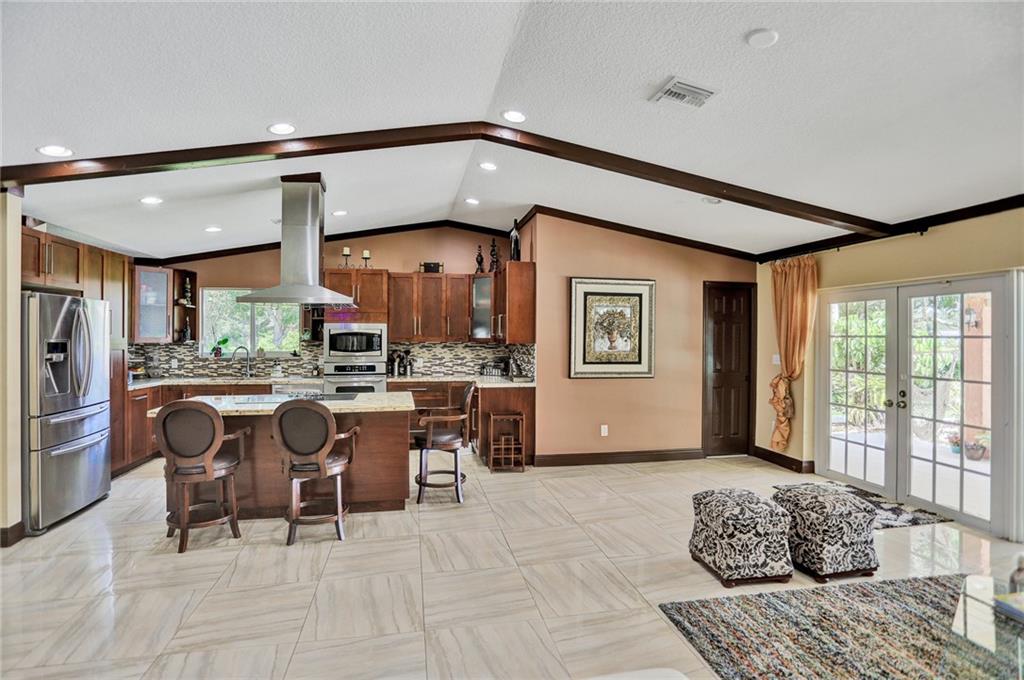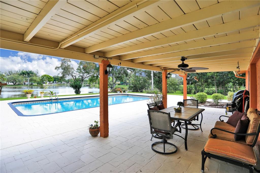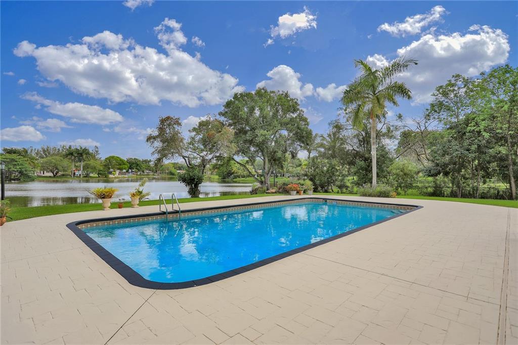Beautiful lake front home in heart of Davie. Main house is 4/3 and detached guest house/in-law quarter is efficiency with separate entrance, kitchen and full bathroom. The whole house was upgraded in 2013 (impact windows and doors, new plumbing, new electric, new A/C including duct work, floors, bathrooms, kitchen, drywall, pool etc). As you walk in the house, open concept with huge kitchen, wet bar, sitting room and soothing water view welcome you. Split floor plan with huge master bed, dual walk in closets and fully upgraded master bathroom is located on one side of the house, while rest of bedrooms on located on the other. The backyard is perfect for entertaining with oversize pool and wide lake view... Come check this beauty before it is gone!