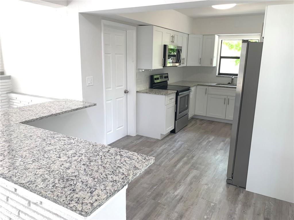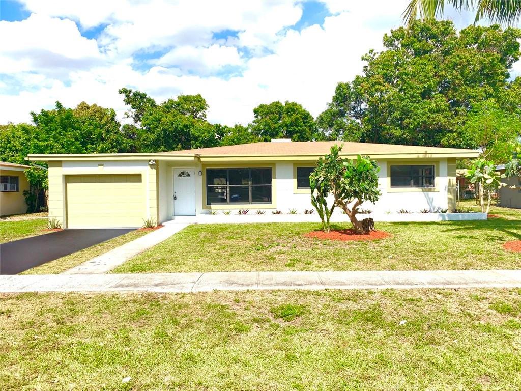 FULLY RENOVATED 3/2 with garage in Melrose Park Fort Lauderdale! Contemporary open floor plan with upgraded waterproof, textured wood-plank vinyl flooring throughout home and bedrooms makes for a spacious feel. Separate dining, living and family rooms with plenty of natural light. New kitchen has solid cabinetry with granite countertops, L-shaped bar countertop for eating & entertaining, under-mount sink, SS appliances. Huge laundry/utility room off kitchen leading to exterior. New lighting, large bright baseboards and neutral tones throughout. Both bathrooms renovated with new vanities, tile, new fixtures, lighting & plumbing; master bath has shower with stone floor, guest bath has a tub. Spacious & clean garage. Huge back yard with room for pool. New AC & upgraded electric.