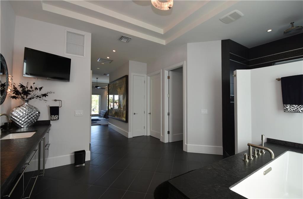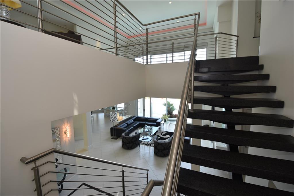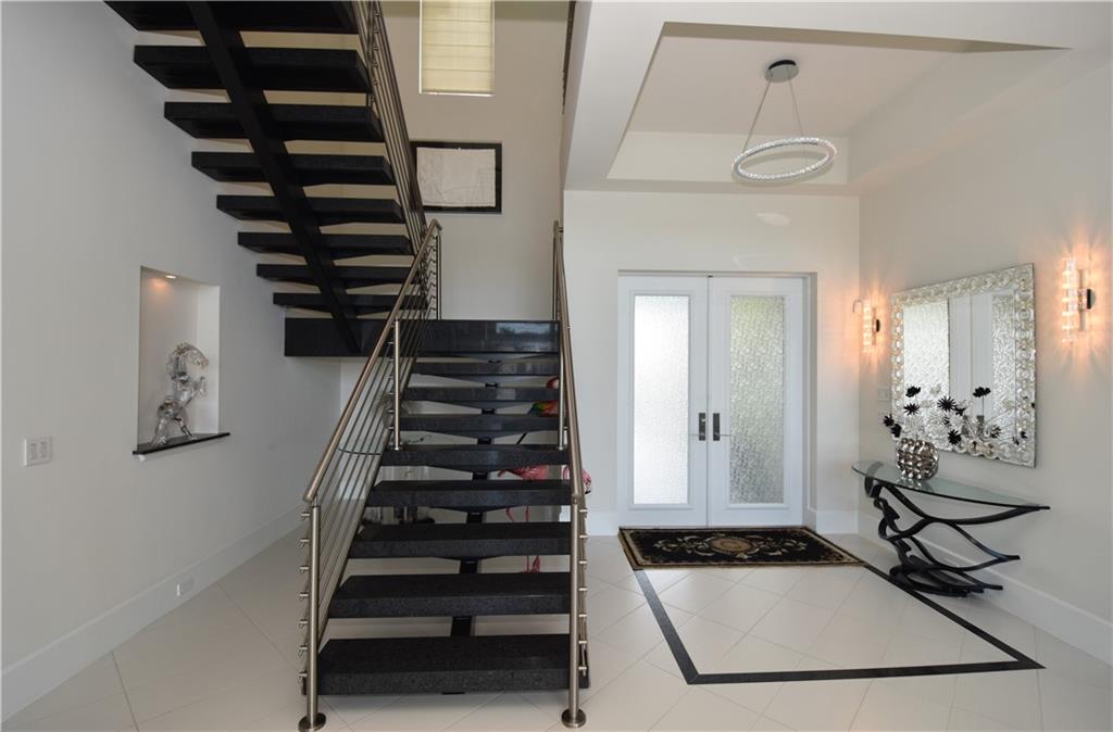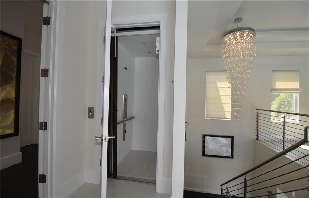A masterpiece in the heart of Hollywood Lakes. Hundred and fifty feet of waterfront. This custom built mansion features 5 Master suites and 6.5 Baths, 2 of the master suite are downstairs. Private elevator. Soaring 28' living area ceiling with water view. Over 6000 sq ft home. Completed in January 2011. Custom Impact Windows. Modern style designed with the most exquisite taste. 2 Fireplaces, one in one of the master suites and one in the grand room. Full size generator. Private dock with water and electric connections. Exquisitely landscape. Full outside kitchen facing the custom built pool and spa. Over-sized laundry room. State of the art security system.