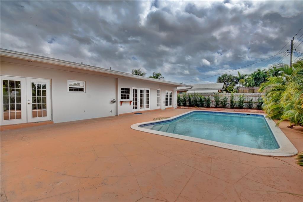 Fantastic 3-bedroom 2-bath home with large pool and 2-car garage located in desirable Coral Ridge Isles. Home has been freshly updated with new doors, hardware and newly painted, inside and out. Modernized kitchen with white cabinets, granite countertops, Stainless Steel appliances, and separate laundry room. French doors from living areas and larger bedrooms lead to the very private fenced-in backyard and pool area. Impact rated garage door and most windows. No HOA. Excellent location being just minutes to the beach, dining and shopping. Conveniently located near good schools. ***TAKE THE VIRTUAL TOUR***. Please be advised that joint owner/seller possesses an active real estate license.