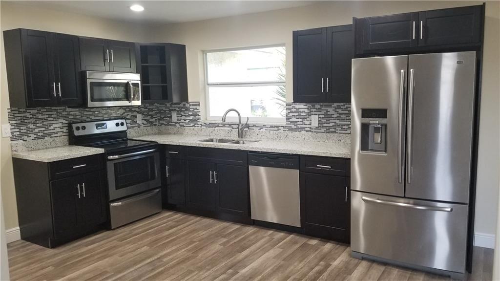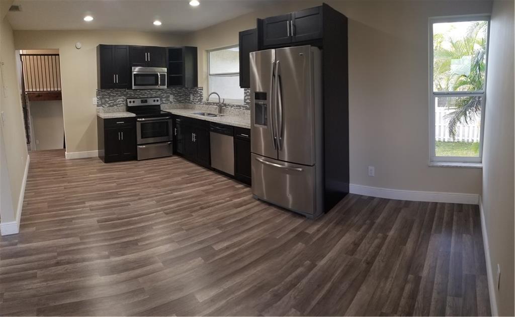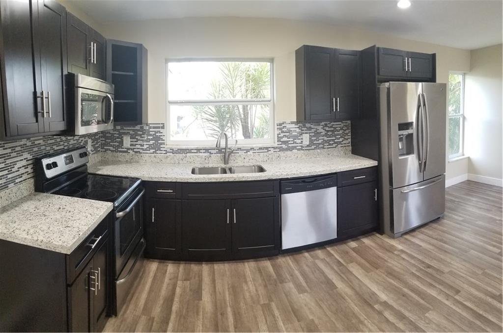 Great opportunity to own a completely remodeled 3 story home with 3 Bedrooms + Den, 2 Full Bathrooms, 1 car garage and double car driveway. Spacious rooms, vaulted ceilings, built-in lights, new kitchen cabinetry w/granite counter-tops and Stainless Steel appliances, new bathrooms, seamless shower, new water-proof laminated floors, washer and dryer, fenced back yard with room for a pool !! Exterior just painted ! Located in a quiet and highly desired neighborhood of Davie. A/C 5 years old. Water Heater 1 year old.