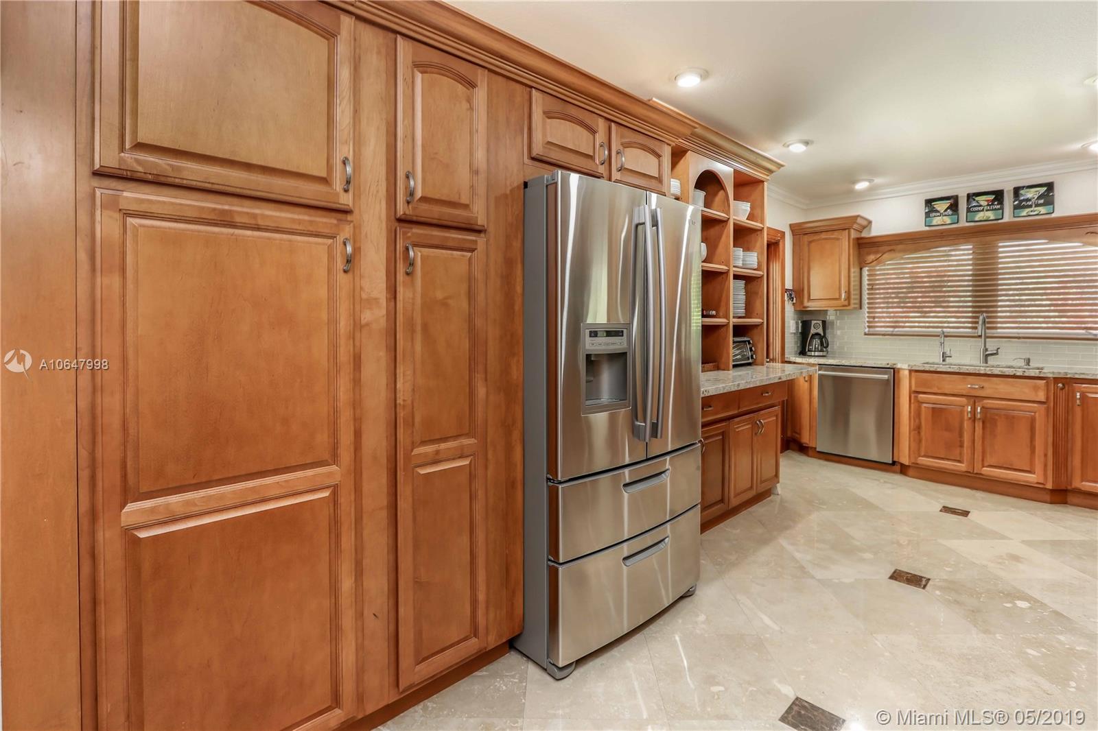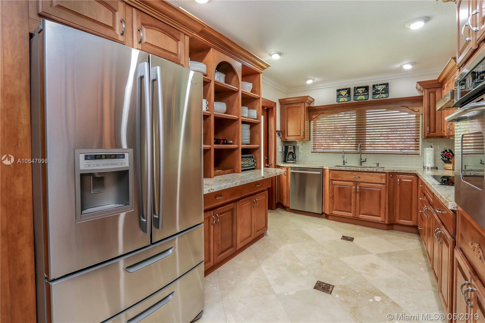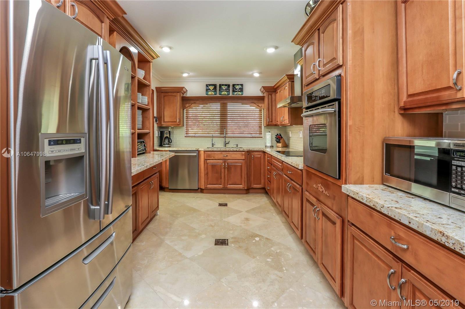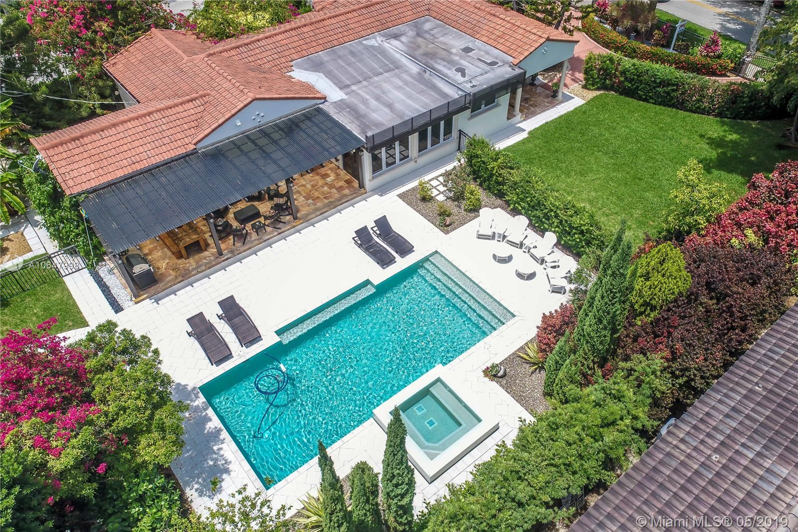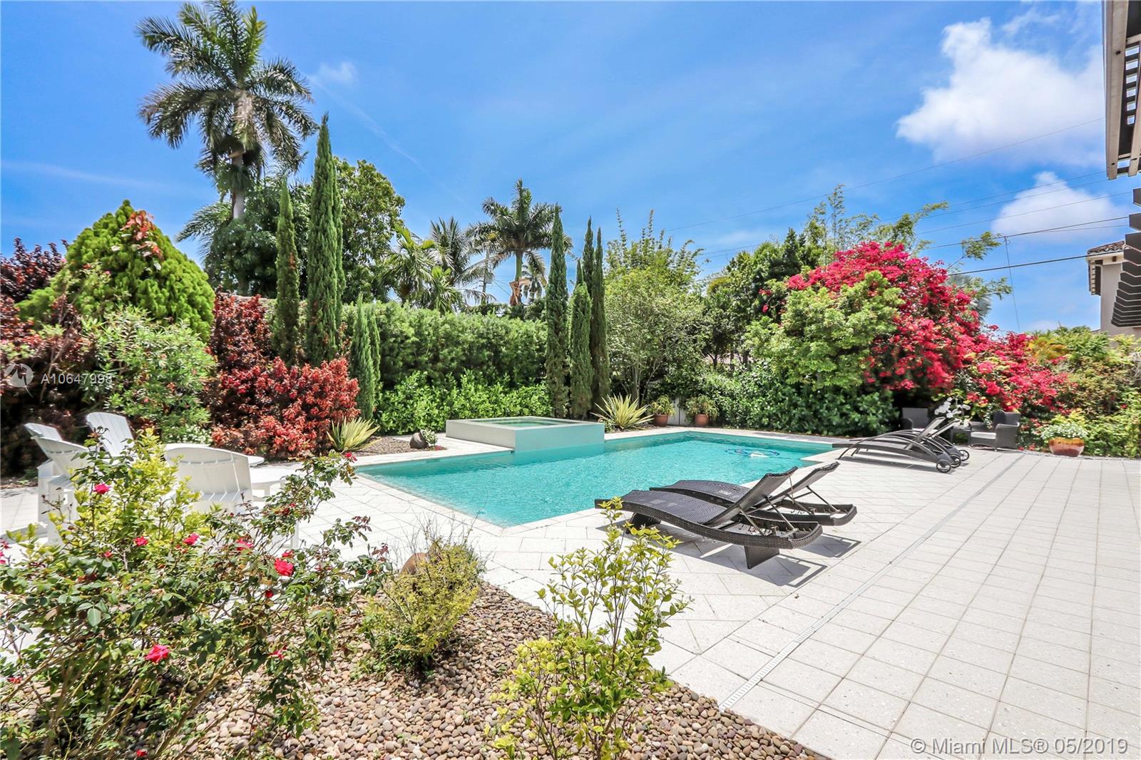 This magnificent 3BR/3BA corner property on double lot. Well maintained property features Travertine flooring throughout, crown moldings, impact windows and doors, many windows providing an abundance of natural light. Great kitchen features stainless steel appliances, granite counter tops w/ glass subway tiles. Updated 3 Baths has floor to ceiling marble walls w/onyx vanity tops. Master bath has separate Jacuzzi tub & shower. Circular driveway has large gates, lush tropical landscaping, tall privacy hedges, w/ iron fencing surrounding entire lot provides extra privacy. Large backyard from gate to alley. Spa/pool w/waterfall, w/ extended covered patio area which is ideal for outdoor dining & entertaining guests. Tankless water heater, filtered water system, indoor/outdoor security system.