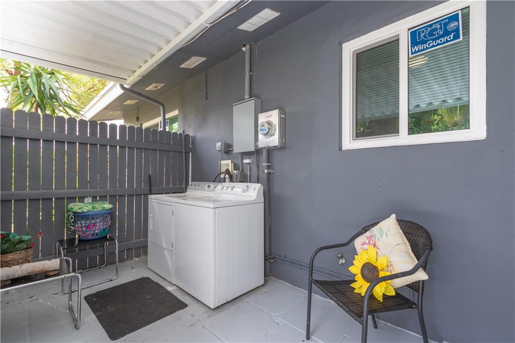 SELLER MUST CLOSE BY 9/16-NO EXCEPTIONS! Recently Renovated 3/2 on Pioneer Drive w/Newer Updates Including: Roof; PGT Impact Windows; Kitchen w/Shaker Cabinets, Deluxe Faucet, Deep Extra-Wide Sink, Blue Pearl Granite & Stainless Appliances; High-Efficiency Central A/C w/Digital Thermostat & Flex Ducting; Lighting; Fans; Front Storm Door; Interior Doors; Bedroom Closet; Toilets; Paved Patio; & White PVC Fence. Upgraded Electric w/New Panels & Interior Outlets. Shower Pan Changed 2014. Private In-Law Suite w/Kitchenette. Split Bedrooms. Terrazzo in 2 Bedrooms. Lush Backyard w/Fruit Trees (Mahogany, Coconut, Olive, Black Sapote). Attached Storage Shed. Partial Carport. Near Golf, Beach, Shops, Dining, Air Park.