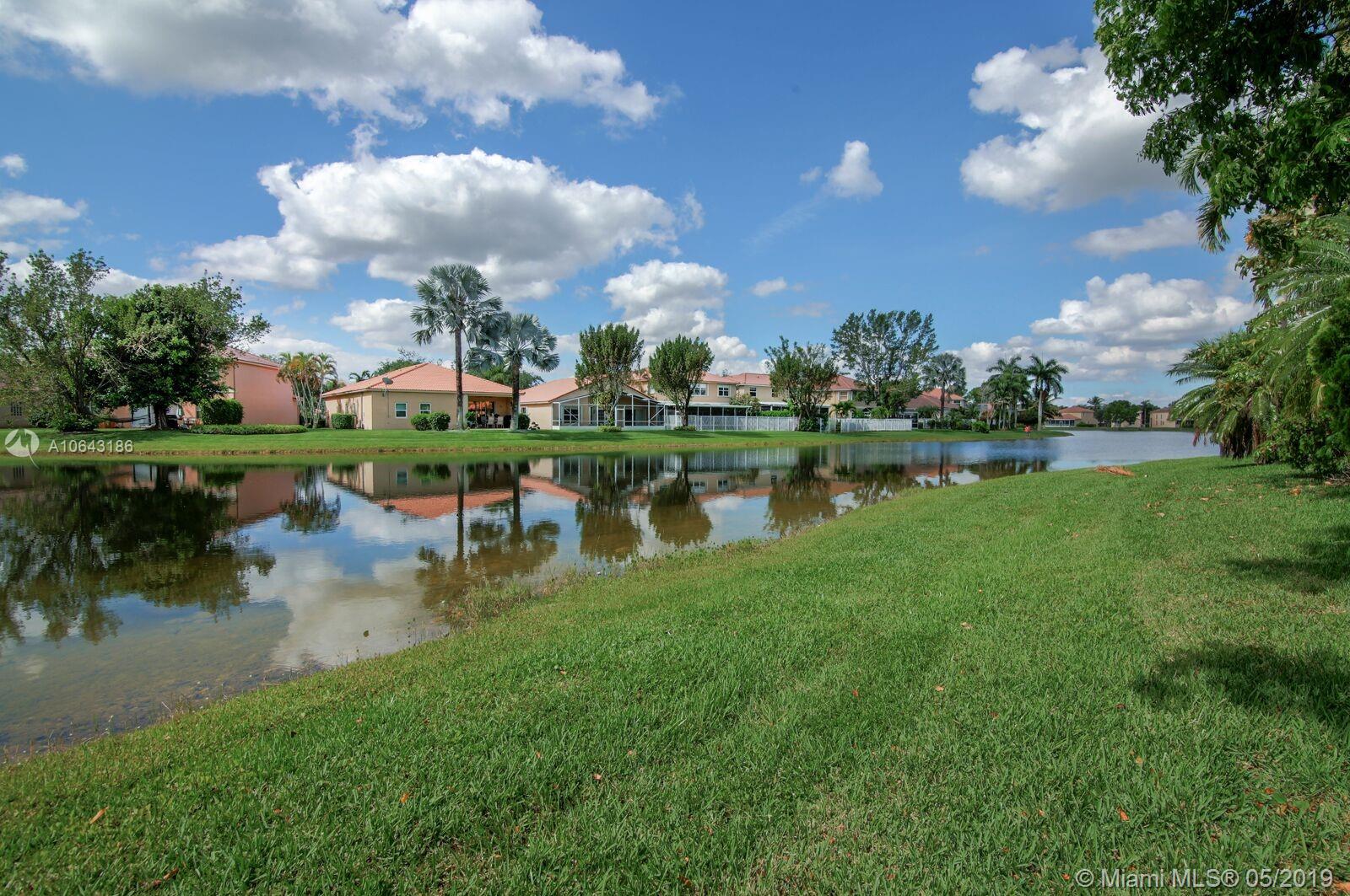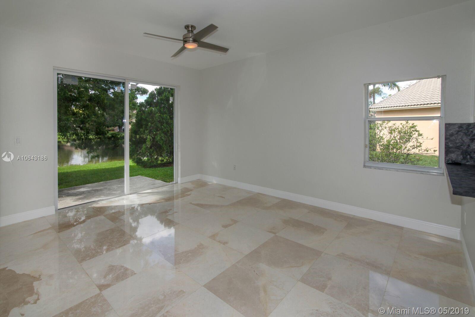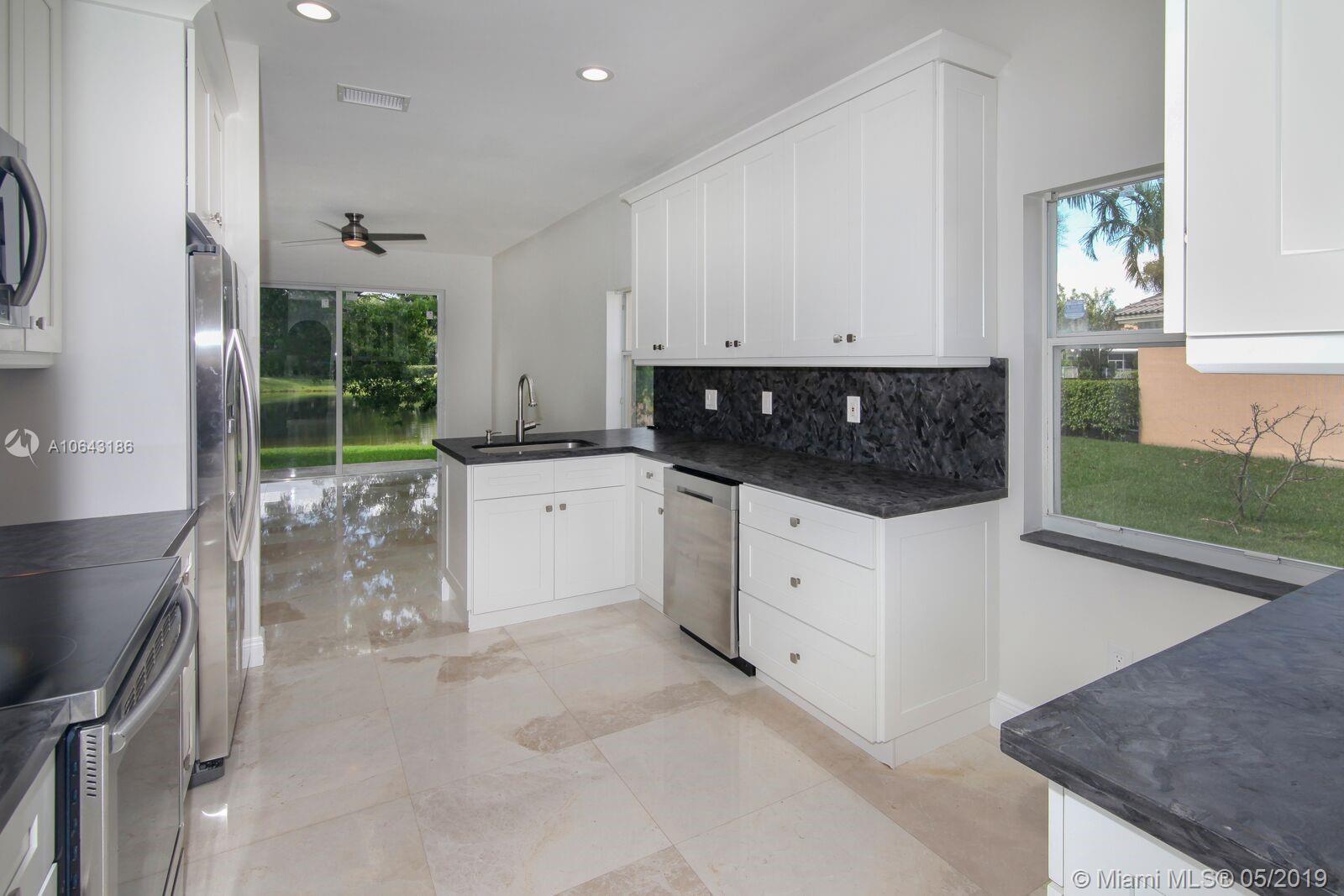 Wow! Absolutely stunning 4-bedroom house with volume ceilings, modern touches and much sought after floor plan w/Master on the first floor. Private and tranquil backyard to enjoy peaceful moments with picturesque lake view! Freshly renovated throughout with new paint, modern kitchen with rare exotic granite and stainless steel appliances. You will want to call this home! Other features include contemporary bathrooms w/marble countertops, elegant floors, eclectic fixtures and so much more. Ready to move in! Excellent opportunity to own an updated home in this desirable 24-hour guard-gated Emerald Estates community. Excellent amenities! “A” Schools!