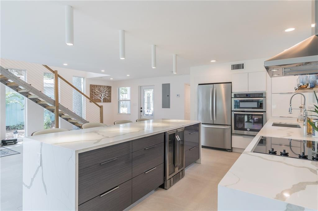 Historic charm of Sail boat bend. Features one stand out detail EVERYTHING INSIDE IS NEW. Walk through the front door and you will see a modern masterpiece. 3 bedrooms and 3 full baths one bedroom downstairs. Euro kitchen design with a wide open feel. Endless quartz counter tops complete with waterfall drop edges to the floor. Soaring 15 foot ceilings with Impact Glass floor to ceiling in the living room for views that seamlessly flow inside and out. to enjoy the beautiful landscaping and Mature trees. The free floating modern natural stairwell brings you to a loft feel. The two master suites upstairs come with ample Euro Style closets with floor to ceiling glass doors. each master suite comes with its own private terraces. This single family home with large lot zoned for multi units.