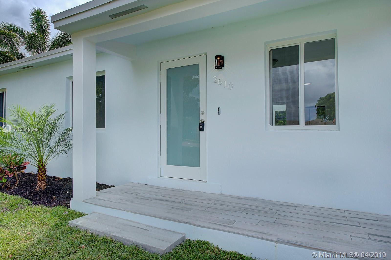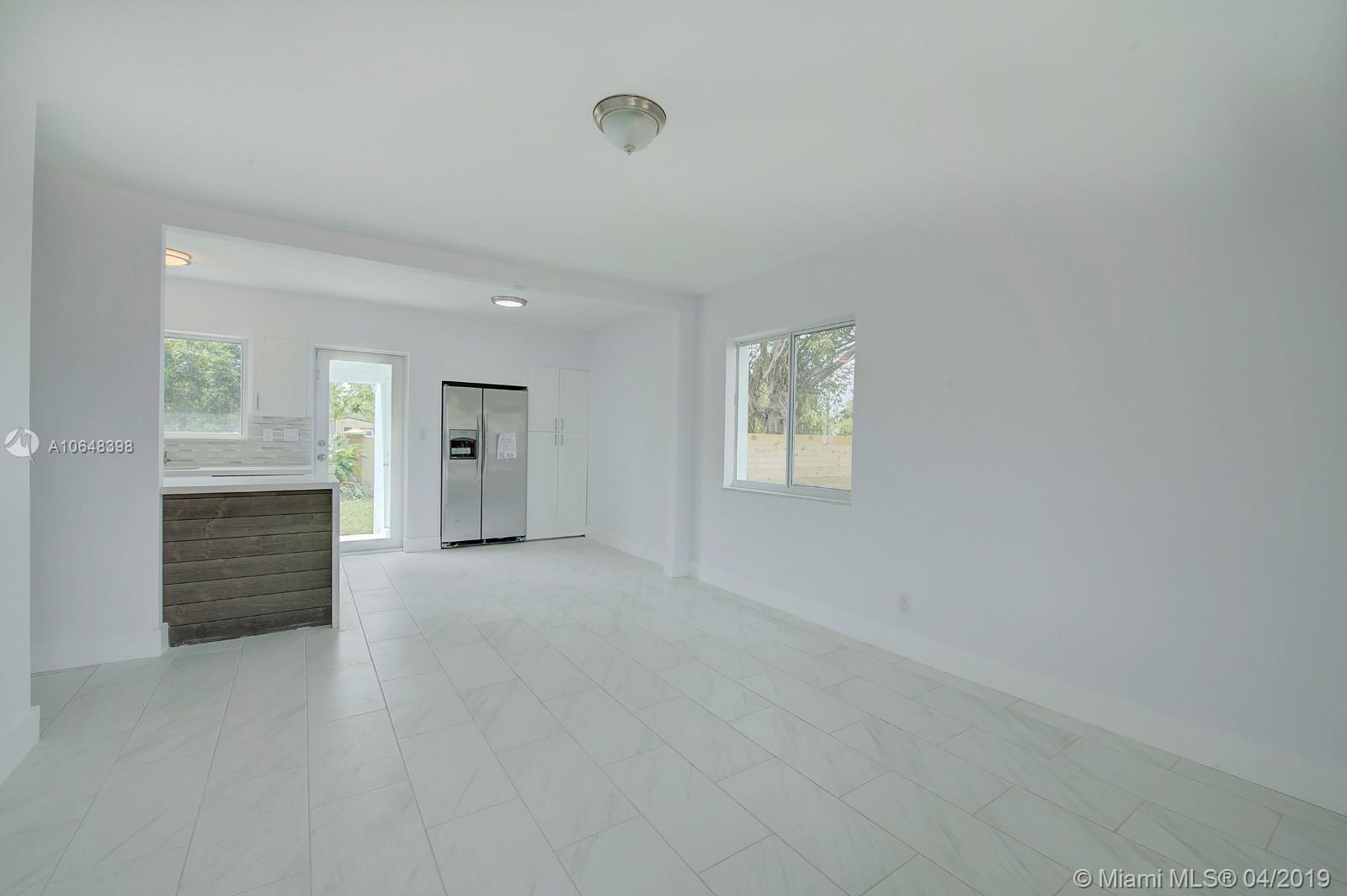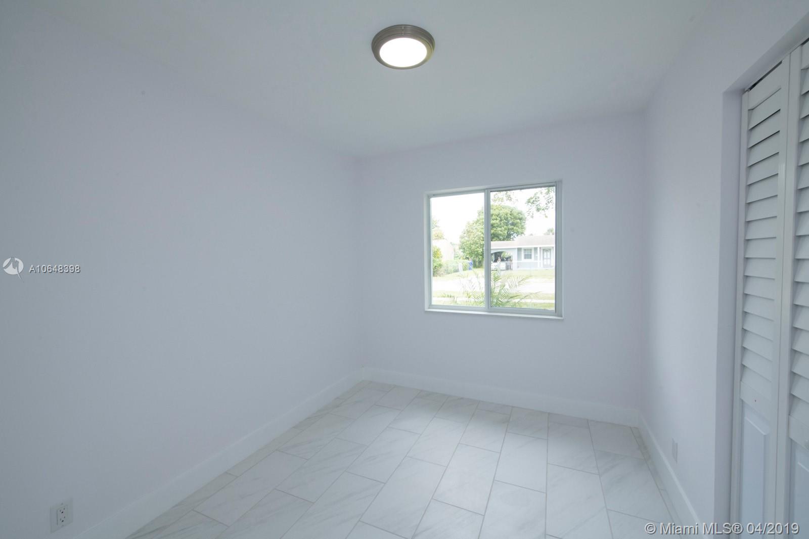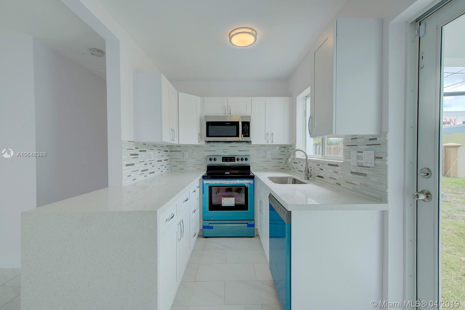 Corner home 3/1 1000 SQ FT. Completely remodeled, Impact Windows, new roof, new plumbing, electrical, new 2 1/2 Ton 16 Seer A/C , New wood kitchen cabinets with quartz counter tops , new stainless steel appliances, completely remodeled bathroom with new glass shower enclosure, New Porcelain tile throughout. New doors and 5 1/2 inch baseboards throughout . Separate laundry room and water heater. New Vivint security alarm system . New sprinkler system and fence .