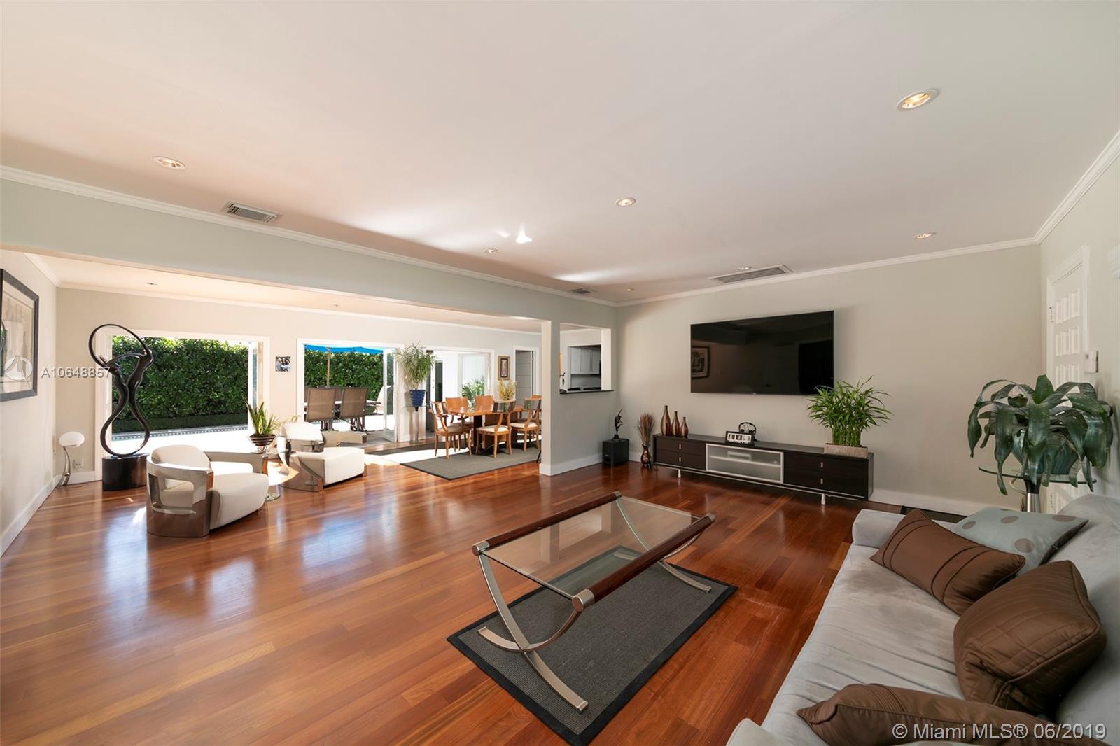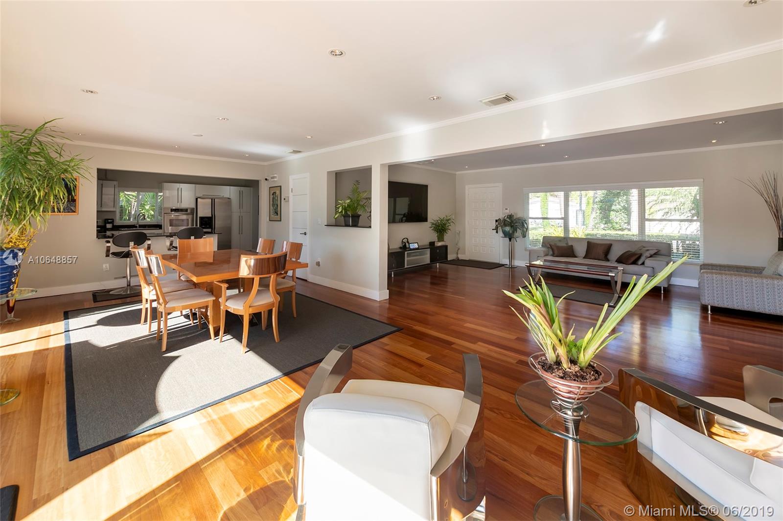 Miami Shores at its best! Fully updated 3/2 on a quiet street close to Biscayne Bay. Open living floor plan is perfect for indoor / outdoor entertaining. Split bedrooms afford privacy with upgraded interior doors for sound protection. Kitchen has great counter space, stainless steel appliances and a breakfast bar. Recessed lighting, impact windows and doors, 2 car garage, closet built-ins and more! Master Bedroom, 2nd bedroom and living area all open on to patio and tropically landscaped yard, custom designed 50' pool and jacuzzi. Move in ready!