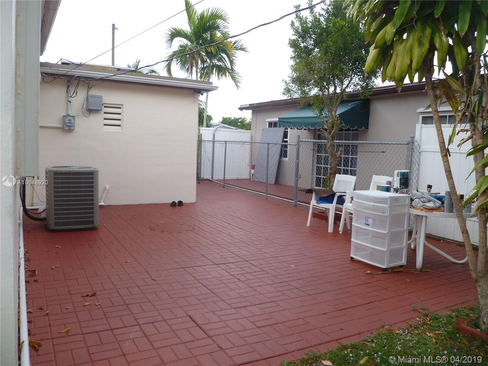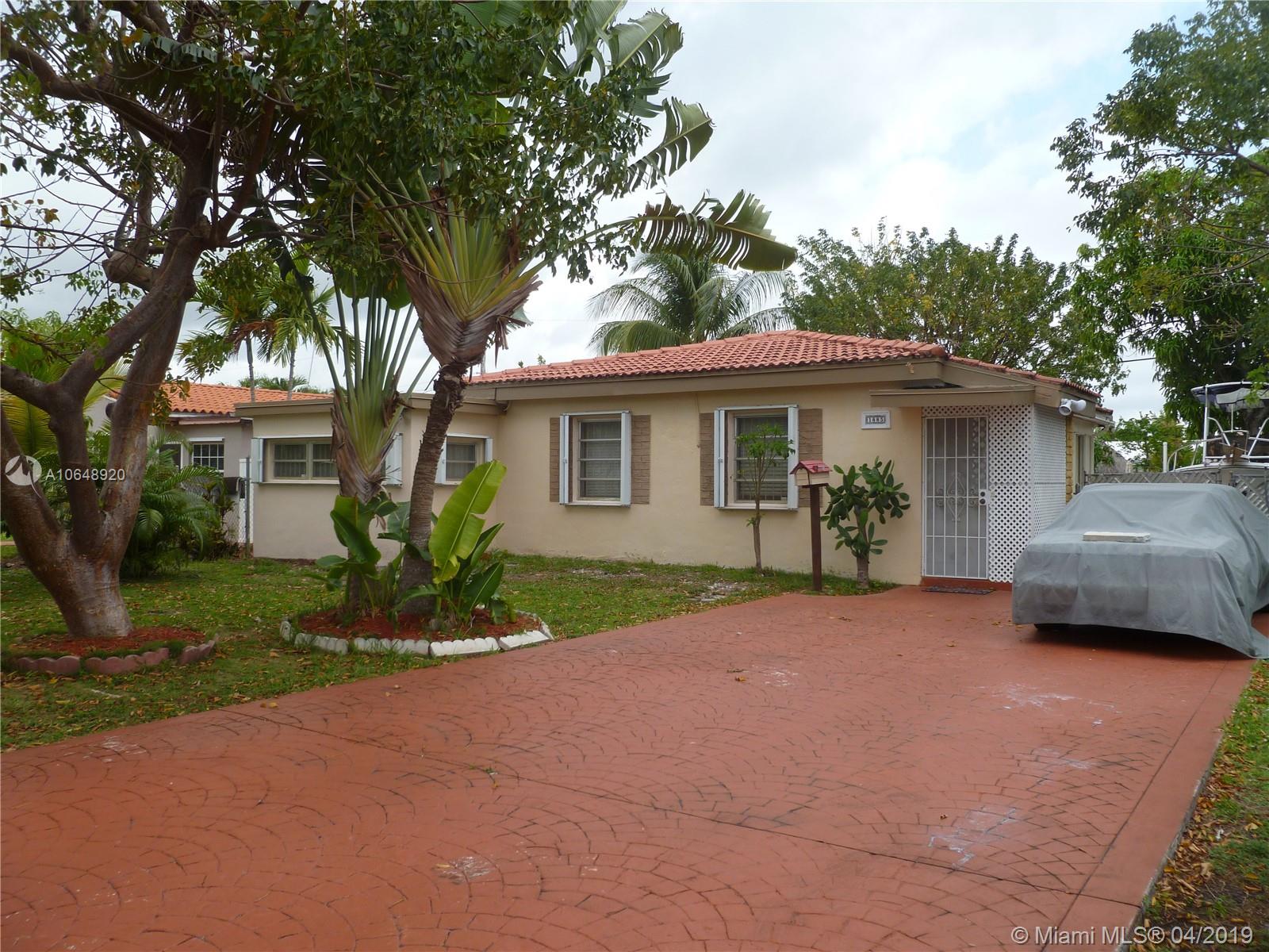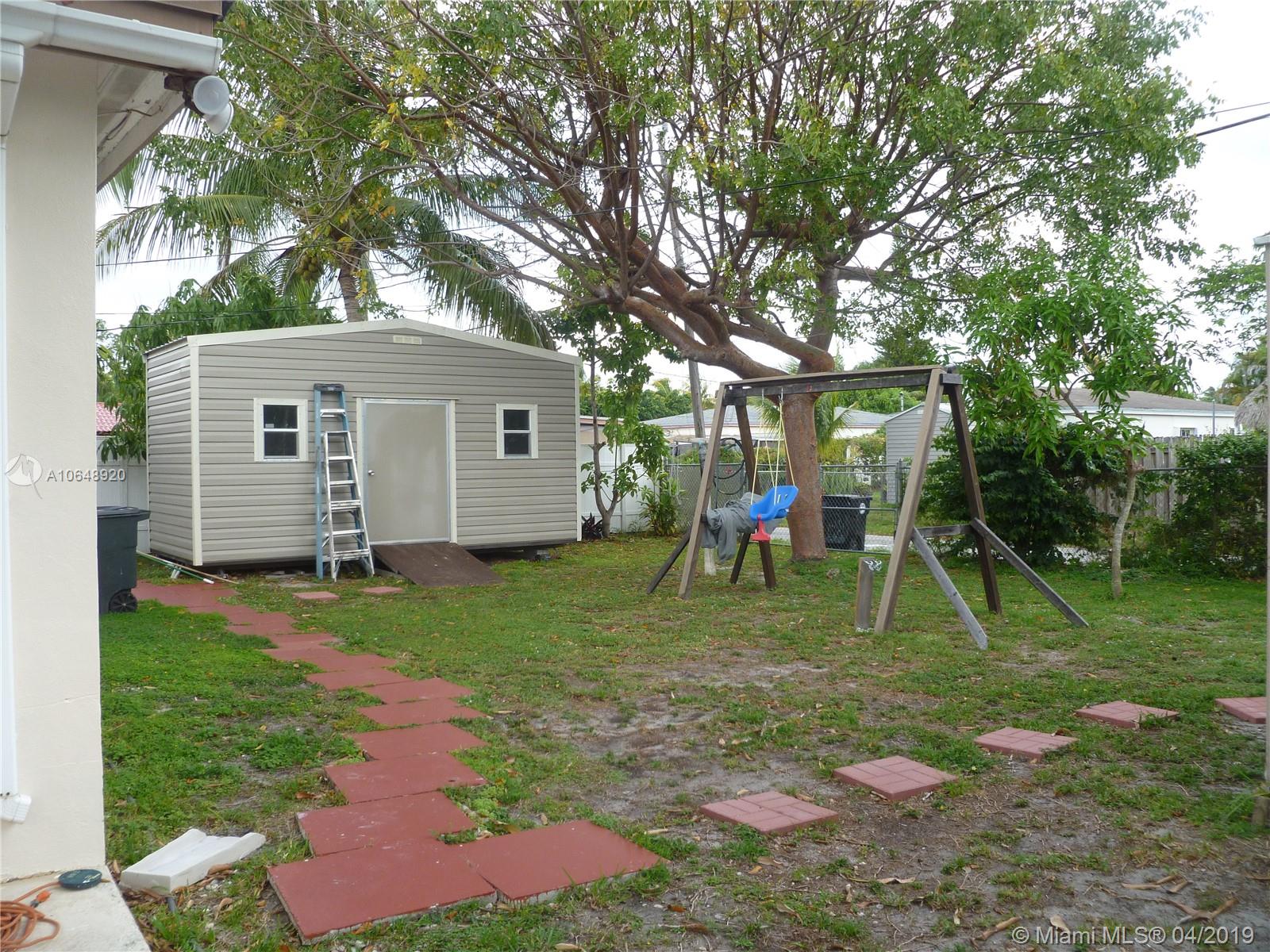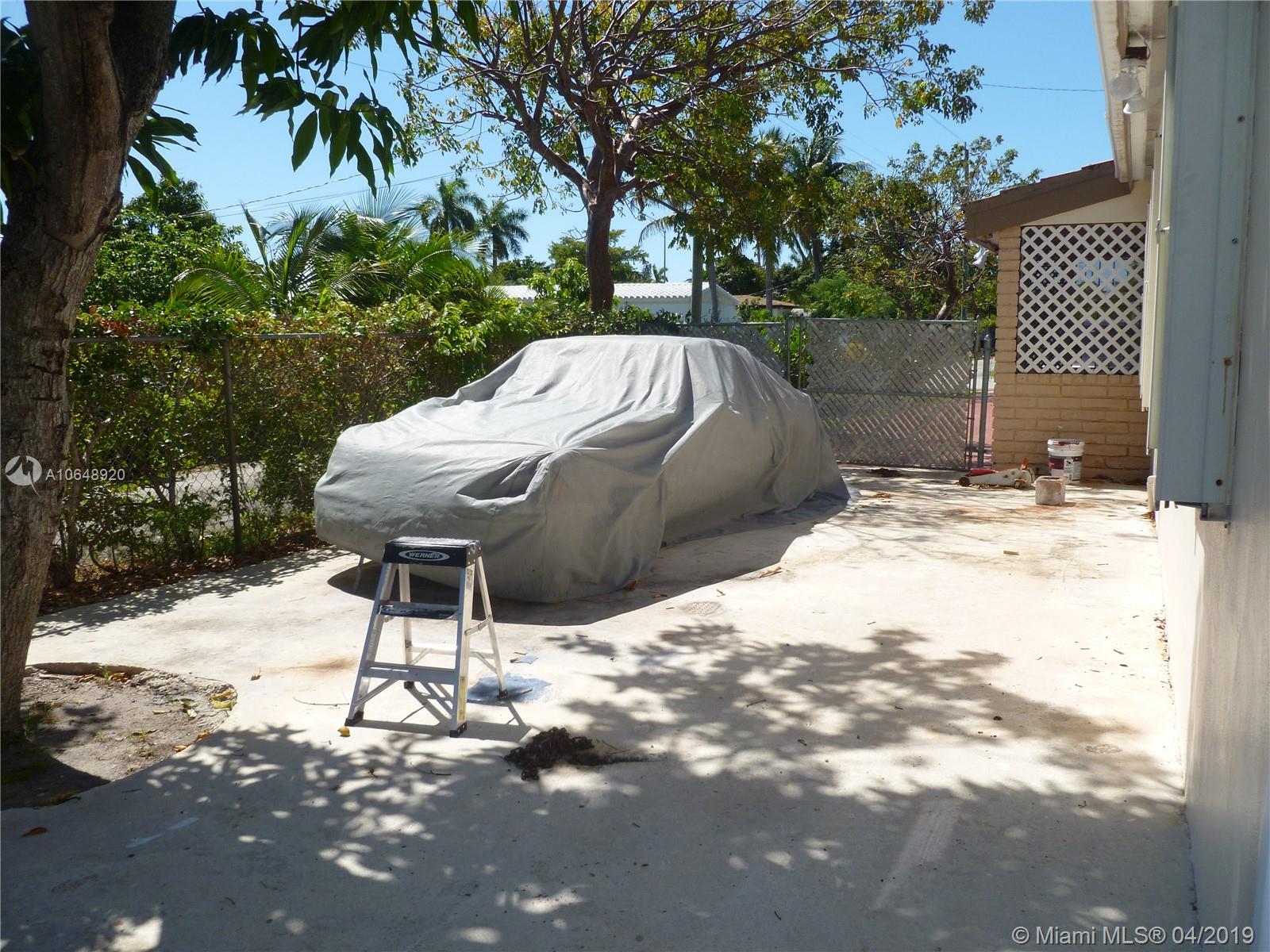 Great property with no immediate neighbors to the east and north, alleys on both sides. double wide extra long concrete driveway, parking for 6 vehicles. double gated side entry can accommodate boat or RV storage. Two storage sheds, one is over sized and newer. Two large patios, fenced privacy lot, covered entry. updated kitchen, stainless steel appliances (french door refrigerator, microwave), granite counters, updated bath, full hurricane protection (accordion shutters). an overall wonderful home ready for a new family. Location is superb, nice street, close to shopping, bus routes, beaches, Aventura, etc.... sold AS-IS with rights to inspect.