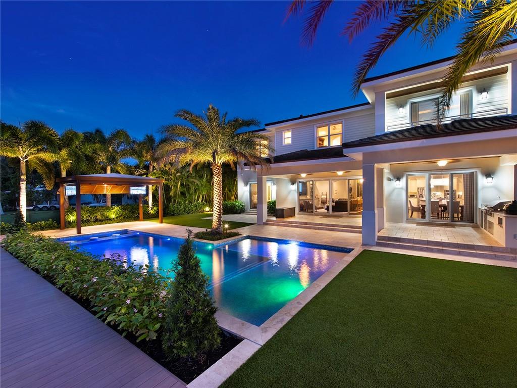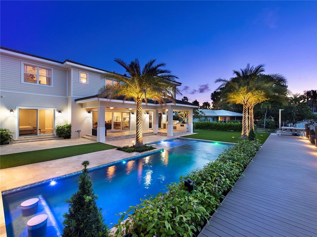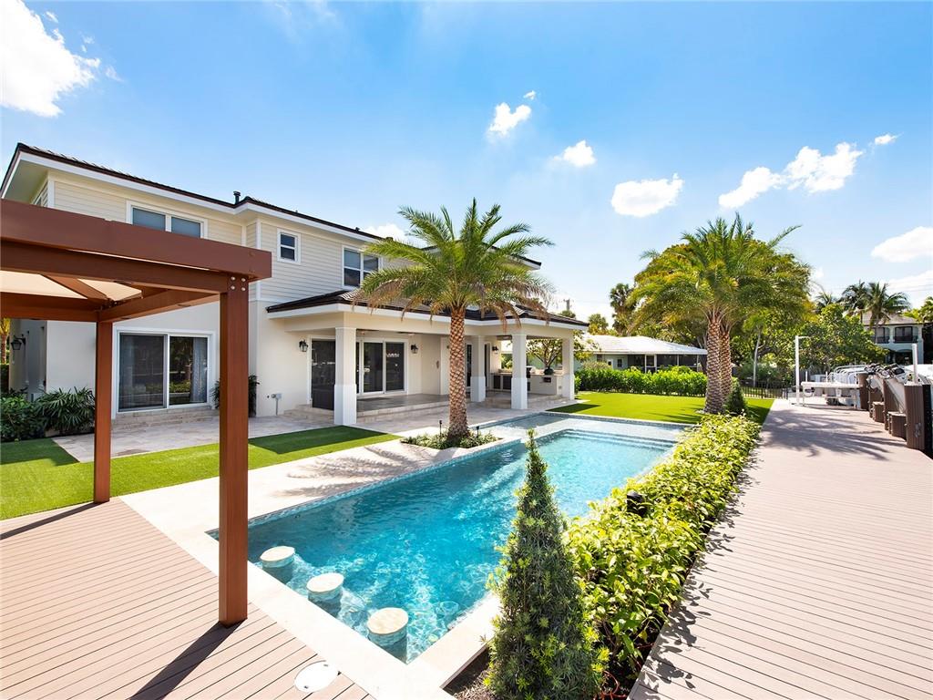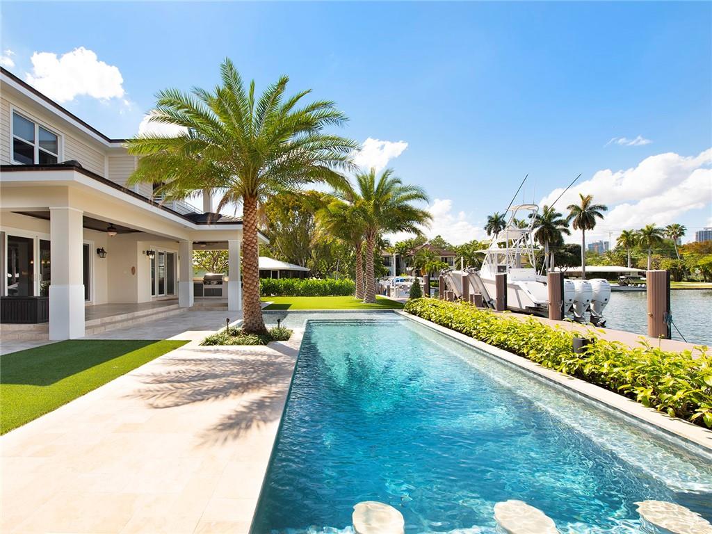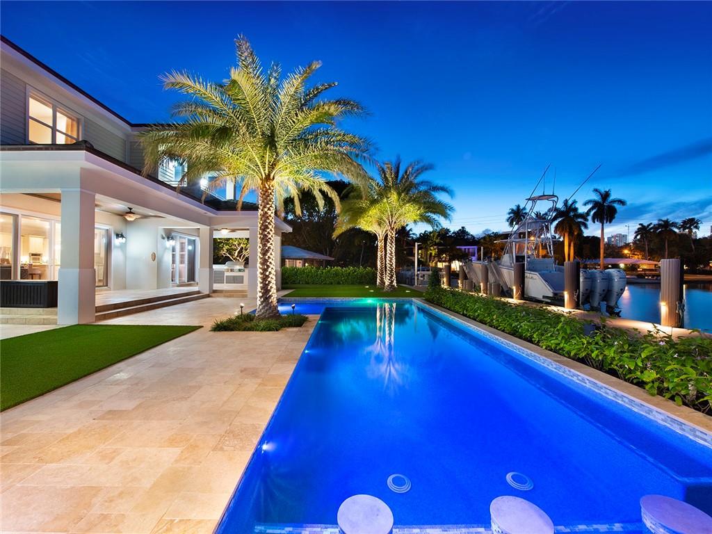 Custom waterfront Key West home built in 2012 located in the desirable neighborhood of Rio Vista Isles. Boaters dream with 100’ of waterfrontage, wide turning basin, 80’ New dock with power. This beautiful spacious home offers 5BR/4.5 baths plus great room, office and upstairs den. Designer finishes & upgrades throughout. Open floor with beautiful outdoor space. Enjoy living South Florida's best backyard with covered patio with natural gas summer kitchen, designer new saltwater pool with gazebo, new dock with new boatlift for 27k pounds. Family fun with putting green. Great for entertaining. Minutes to Las Olas, Downtown, Fort Lauderdale beach, restaurants, shopping and Airport. Fast and easy to get to Ocean Inlet and walk to Lauderdale Yacht Club. A must see.