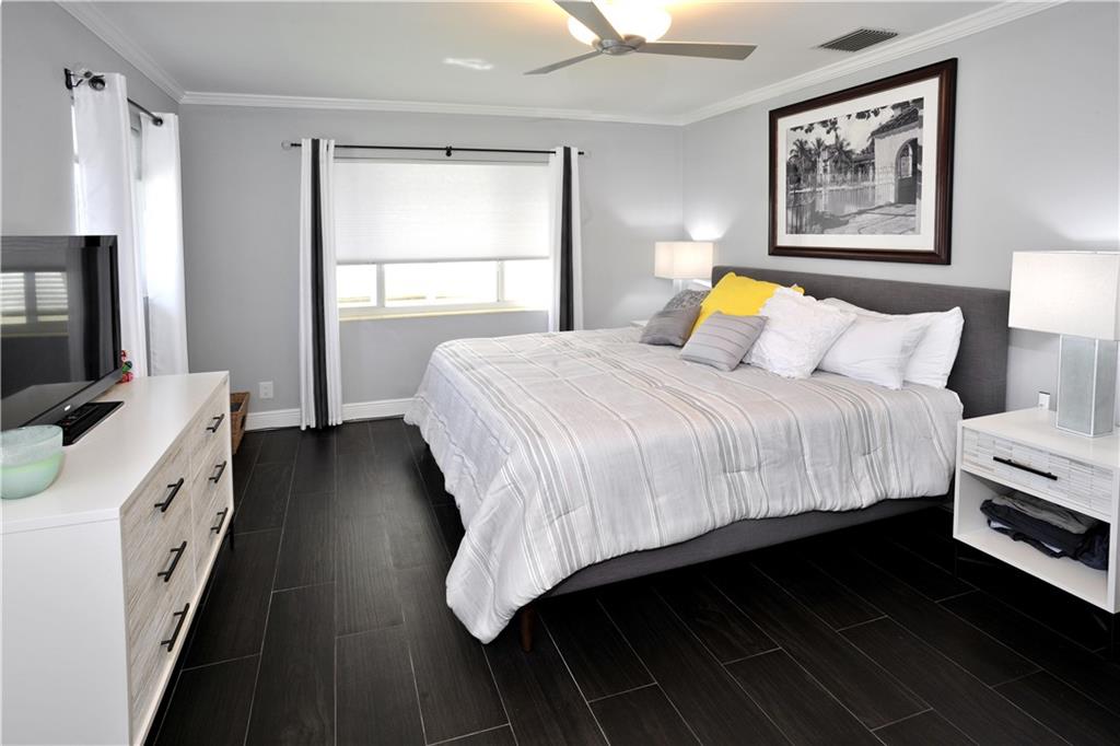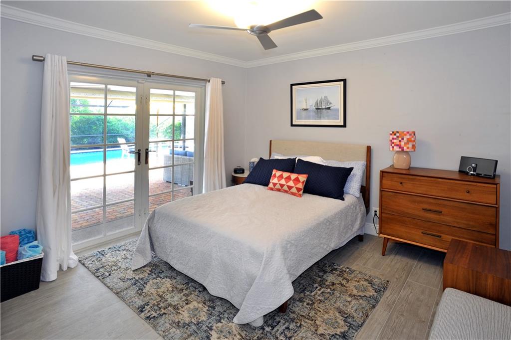 Tastefully renovated pool home just a short walk to Hollywood Beach and the Hollywood Marina. Features large format tile flooring in the living areas and new wood-look tile in the bedrooms. The kitchen has beautiful granite counter tops and stainless steel appliances. All of the interior doors are new. And there's space for a small office. A covered patio and screened-in pool area just off the main living room. Open the French doors to the outside and you'll add 1100 square feet to your living/entertaining space. All of the windows and doors are protected with hurricane rated shutters. You'll also find an extra long driveway and a one car garage in back off the alley. This is South Florida living at its finest.