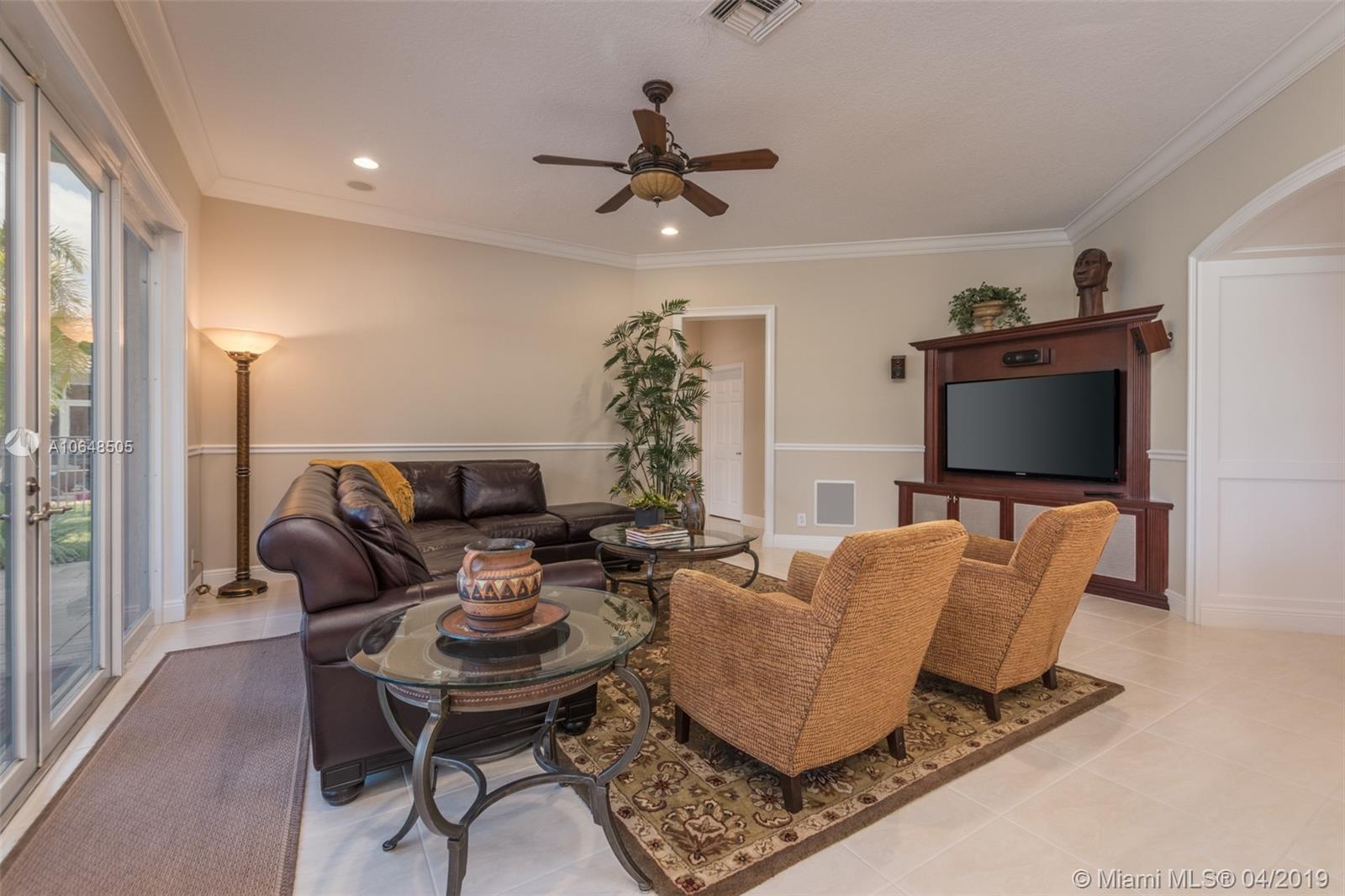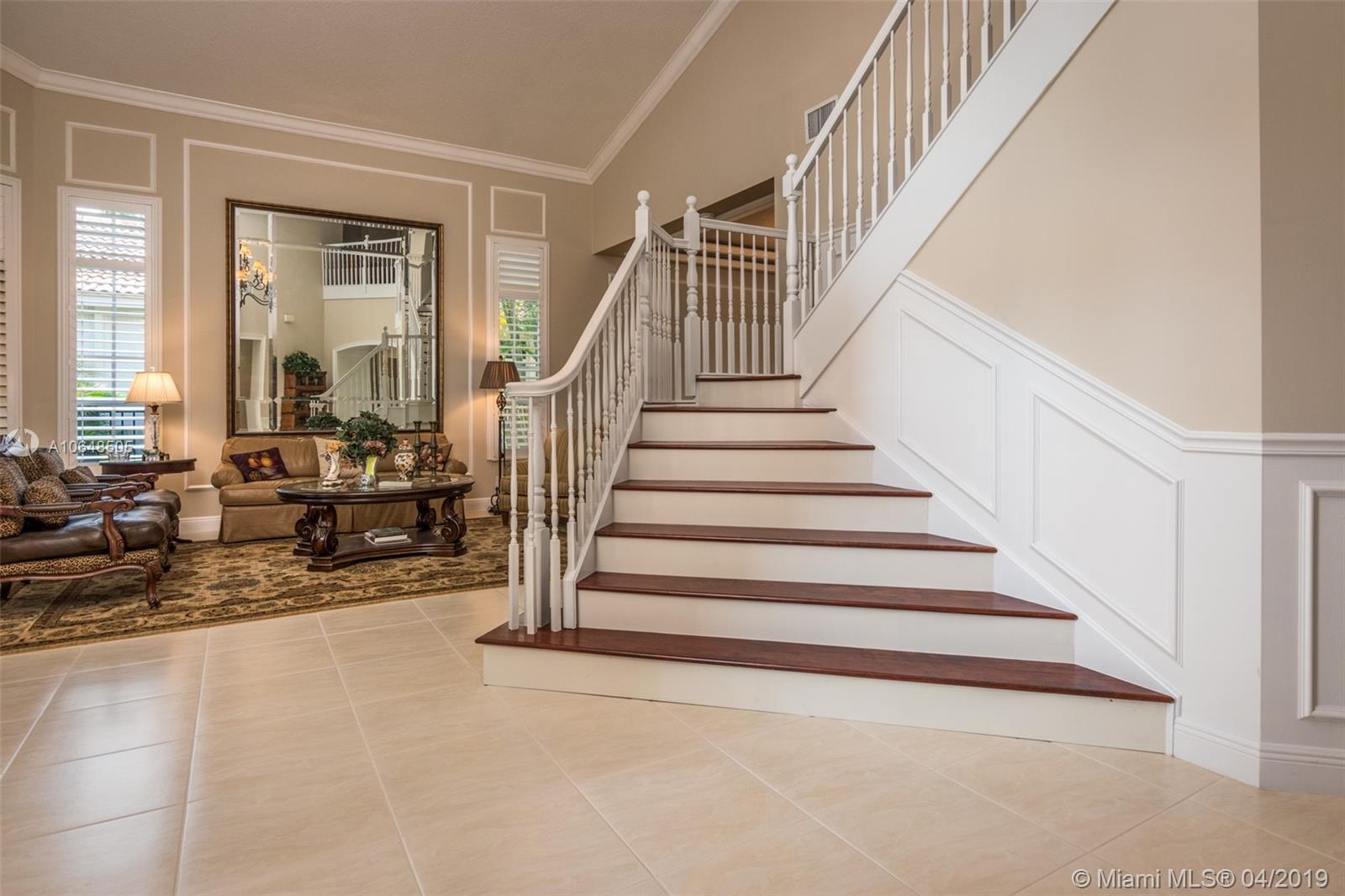 Perfectly placed on a oversized golf front lot with renovated travertine pool deck, fully fenced and lushly landscaped for privacy. This custom built Landmark home features two bedrooms downstairs (playroom or office with closet) with cabana bath and four spacious bedrooms up plus loft. Brand new wood floors on stairs/hallway. Master bedroom with impact slider to private screened balcony overlooking pool and golf views. Upgraded gourmet white kitchen with granite countertops and Stainless Steel appliances. 20 inch tile throughout living areas. New neutral paint first level. Full accordions protection, garage professionally organized.