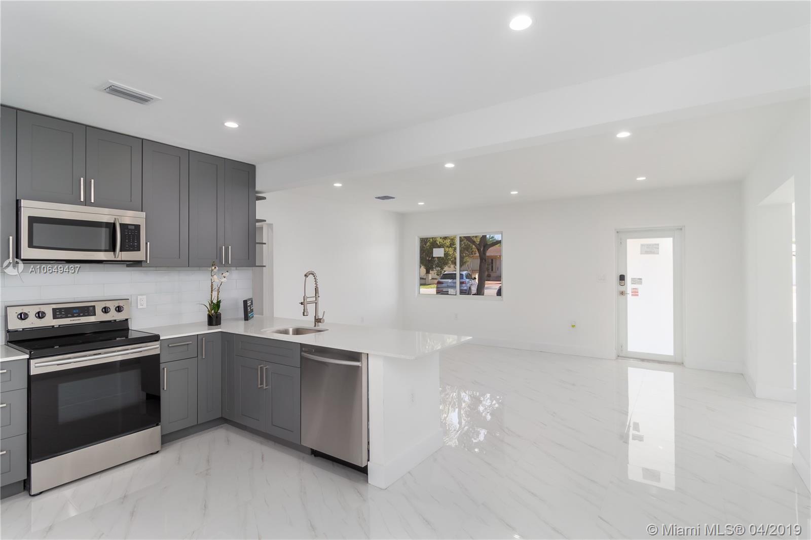 Completely renovated single family home in a great family oriented neighborhood in North Miami, all construction has been done with city permits. This immaculate house offers 3 bedrooms 2 bathrooms, formal dining room can be used as a den or office, impact windows, new electricity and plumbing, white tile floors, open kitchen with quartz countertops and stainless steel appliances, modern bathrooms, master bedroom with a walk-in closet with a stylish barn door. This home is equipped with everything you will need to simply move in your furniture. Close to major highways, banks, shopping centers, supermarkets and minutes away from the beach and Aventura Mall. Call listing agent for private tour.
