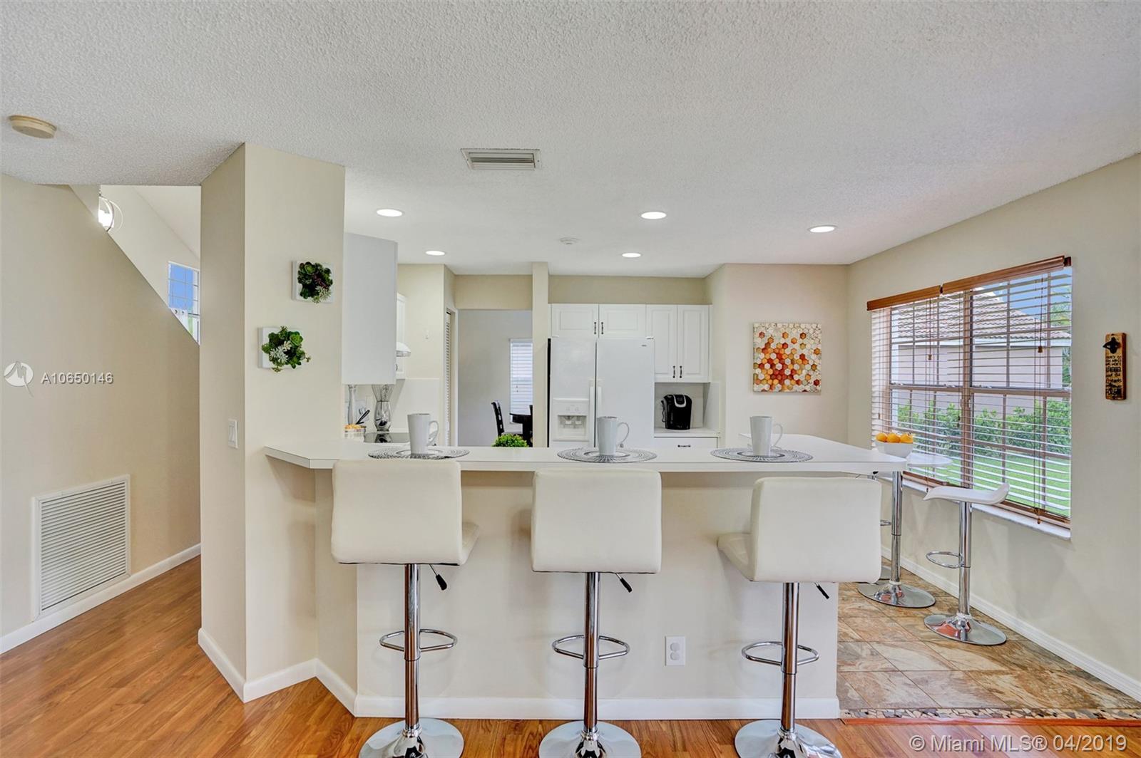 One of the LARGEST three bedroom FLOORPLANS in Weston. SPACIOUS FRONT YARD and BACKYARD. This home has been recently painted inside; the wood staircase has been re-finished, brand-new laminate installed on upstairs landing and master bedroom (secondary bedrooms had laminate installed 2+years ago), all three bathrooms have been recently updated, and the kitchen cabinets were re-faced in the last two years. Home exterior was painted two years ago.