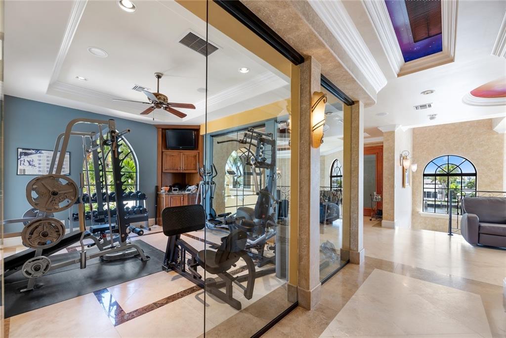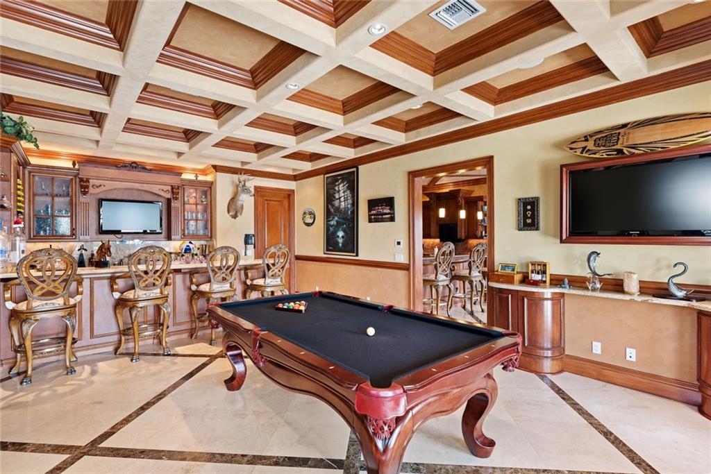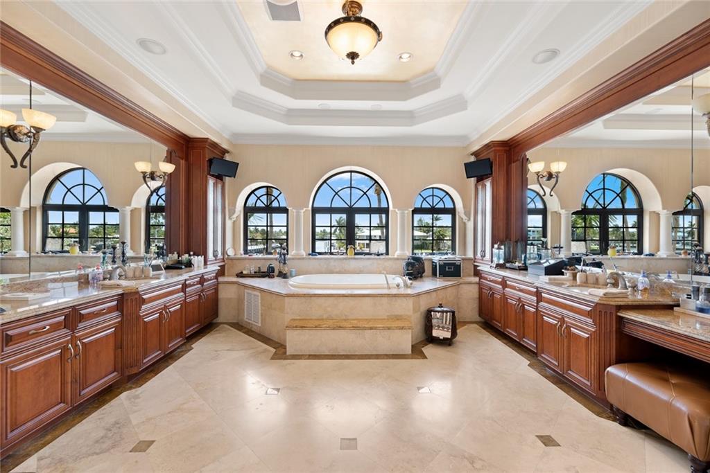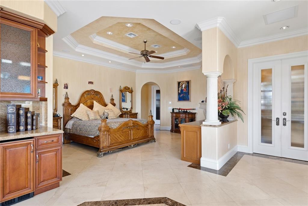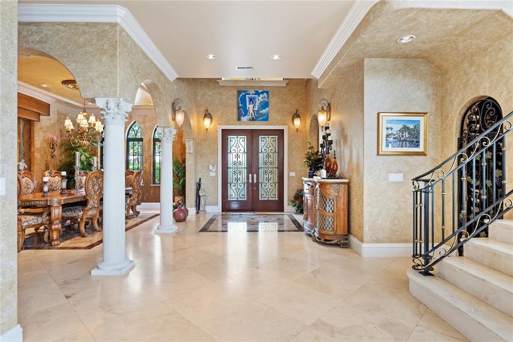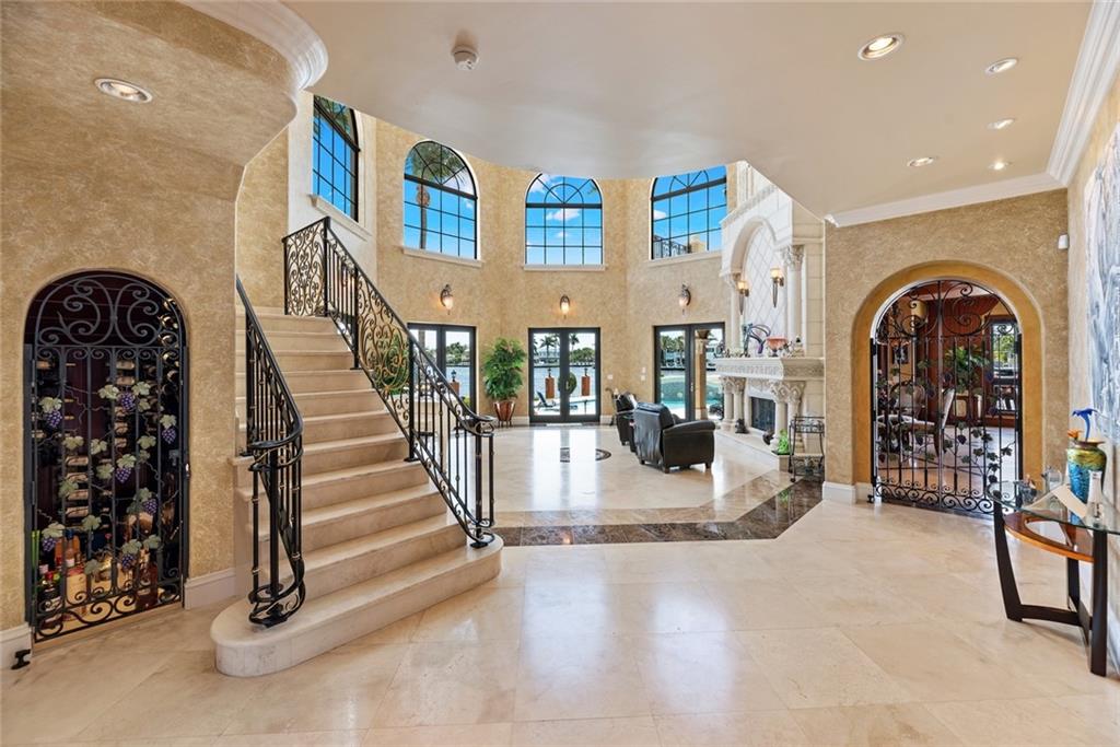 INTRACOASTAL POINT LOT WITH 238 FT OF WATER FRONTAGE AND WIDE WATER VIEWS. STEP INTO THIS BEAUTIFUL HOME WITH 38 FT COFFER CEILINGS WITH SPECTACULAR DETAIL, GOURMET KITCHEN WITH ONLY THE FINEST FINISHES, GAS FIREPLACE PRIVATE GYM, ELEVATOR, SPECTACULAR WATER VIEWS FROM ALMOST EVERY ROOM IN THE HOUSE. IF YOU LIKE TO ENTERTAIN THIS HOME HAS IT ALL, WINE CELLAR, GAME ROOM WITH BAR, OUTSIDE SUMMER KITCHEN AND LOTS OF COVERED PATIO AREA. 3 CAR GARAGE, ELECTRONIC GATE FOR PRIVACY AND SECURITY. LOCATED ON THE BARRIER ISLAND. THIS HOME HAS IT ALL.