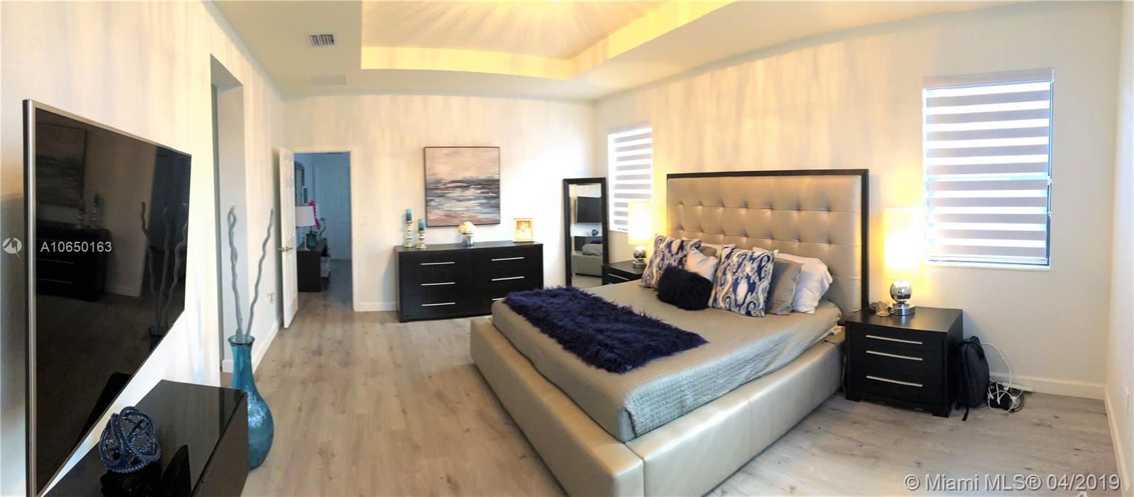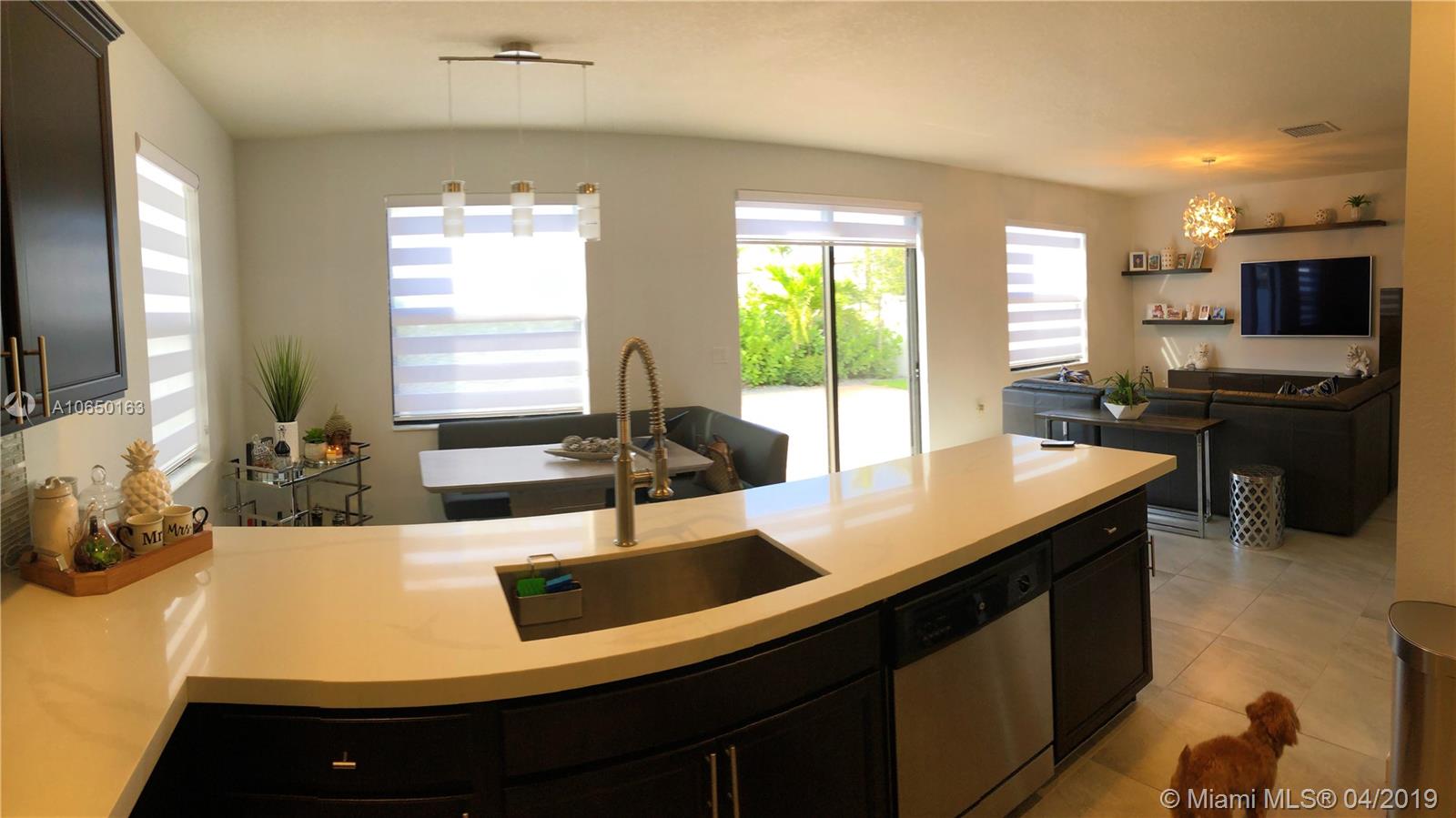 This Exquisite New Home modified from its original Builder has been decorated and remodeled by an Interior designer to capture the beauty and comfort-ability that any buyer hopes for in a home. Its open layout carries from the receiving area to the formal living into dining extending into the family room is an open gorgeous kitchen with Quartz counter top floating cabinets and top of line appliances. Enjoy a huge Master Suite and Bathroom. Upgrades include Satin Zebra Blinds, smart home media system, interior and exterior lightening, Tank-less water heater, extended paved driveway and patio, installed rain gutters and beautiful landscaping. Don't miss this opportunity in getting all the upgrades upfront already and owning this Gorgeous Home in this beautiful community.