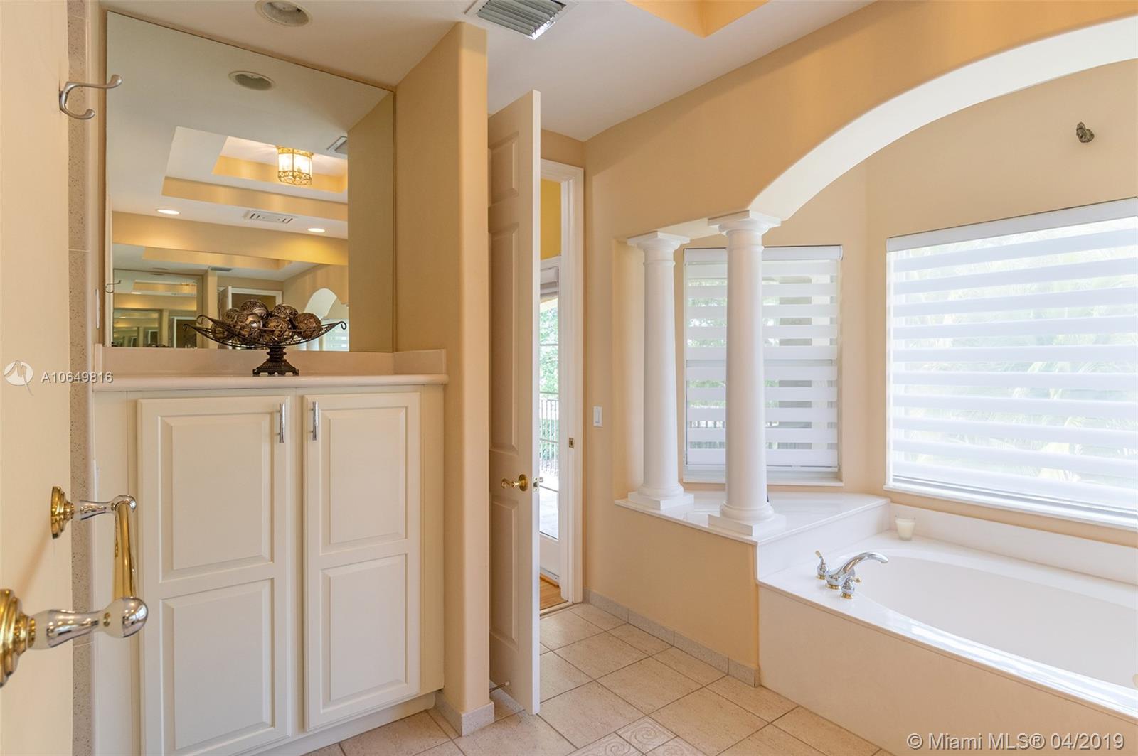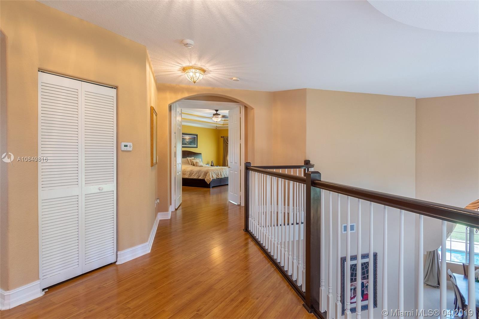 Beautiful upgraded home in Sunset Lakes! This home opens up to large porcelain tiled floors and vaulted ceilings with new crown moldings and baseboards recently done. A winding wooden staircase leads to the upstairs rooms including the oversized master bedroom and bath. Walk in closets with custom made closet cabinetry comes complete in the master. Downstairs you will find an extra jr. master bedroom with its own bathroom. The kitchen has been tastefully upgraded and features a gorgeous cooking island overlooking the oversized yard. The house sits on a corner lot with lake views and plenty of room. The pool was recently resurfaced and had a pump replacement. Some other updates to the house include, two A/C Units, water softener, new gutters, new toilets, new sprinkler pump, and many more!