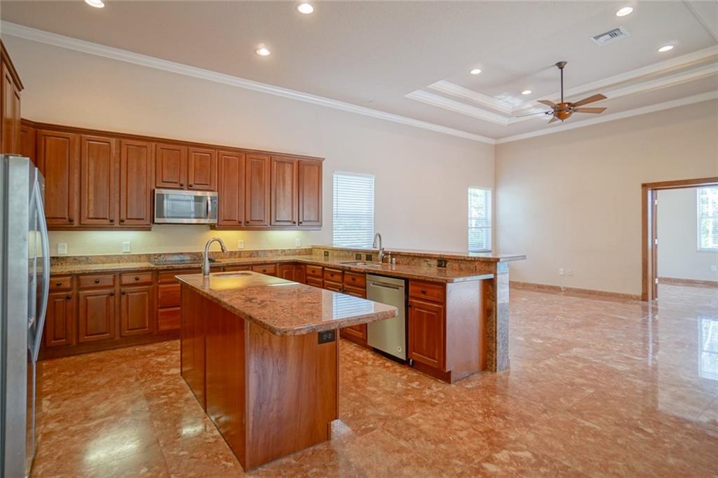 BEST VALUE IN HIGHLAND RANCH ESTATES! Much sought after Michelangelo model features 4 Bedrooms 5 Baths, plus den and play room. Marble floors, elegant tray ceilings, wet bar. Over sized living/family room areas with gorgeous views of the pool. Gourmet kitchen with Stainless Steel appliances, granite counter tops, center island and snack bar. Master suite, offers large sitting area, as well as his and hers baths. Dual walk-in closets. Take in views of the pool from the comfort of your master suite. The privacy of the covered Patio area and screened pool make it a great space to enjoy and entertain. Over-sized fully fenced private yard. A/C Units 3-4 years old. Brand NEW water heater. This spectacular home has it all.