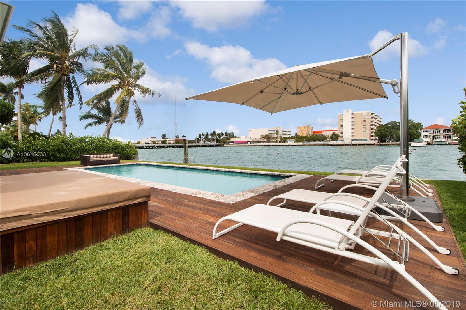 Gorgeous waterfront North Bay Island home. 4 bedrooms 3 baths + Den. Infiniti bay views from everywhere inside the home. Cherry Wood floors, Spacious master with large balcony overlooking the bay. Dramatic high ceilings with skylight in foyer area. Open kitchen perfect for entertaining. New outdoor patio deck w/ Infiniti pool. Entertainment room, skylights, ample windows for maximum light and water views! A must see, show your pickiest clients. Must see video tour! Taxes do not reflect homestead exemption. Property has a very profitable Airbnb business operating legally with all licensing. Always booked out in advance. Please contact listing agent for days available to be shown.