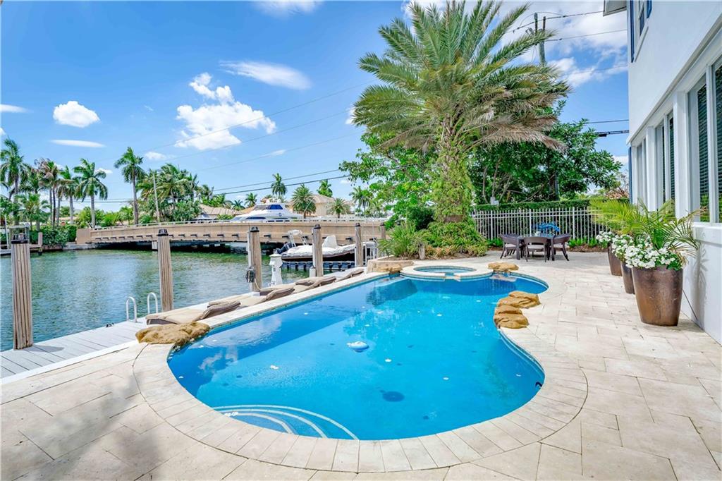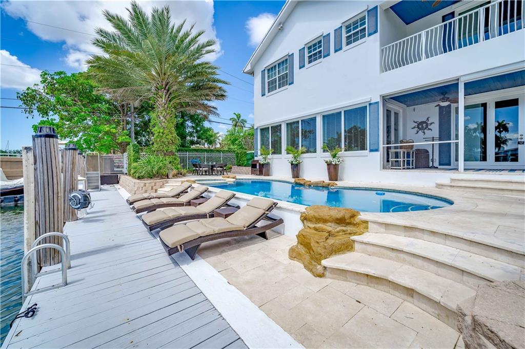 "Casa Del Sol" exceptionally designed and Luxury Custom Built home offers 5 bedrooms/ 5 baths with over 5000 sq. ft. This residence embodies the Florida Lifestyle w/ southeast exposure, prevailing Caribbean breeze & minutes to the Port. Enjoy 70' on the Wide Carlotta River, dock your 60 ft. Yacht, Deep Draft Sailboat, or multiple boats stern too. Every detail of this home was created by a renowned designer. Incredibly Spacious open floorplan beams with sunlight throughout both floors. Enjoy the formal & informal dining, wet bar, chef's kitchen w/walk-in pantry, wine cooler, ice maker while entertaining many. The living area, warm and inviting, is surrounded by glistening wide water views. Extensive patios surround the blue pool/spa, outdoor kitchen, dining areas & dock. +Super Dog Run!