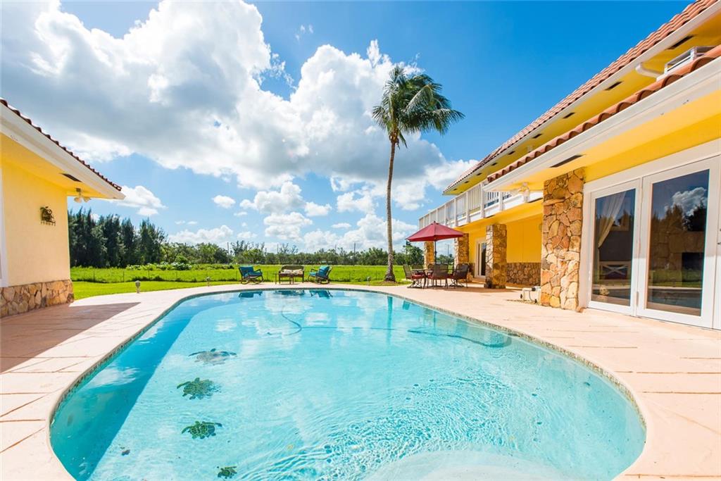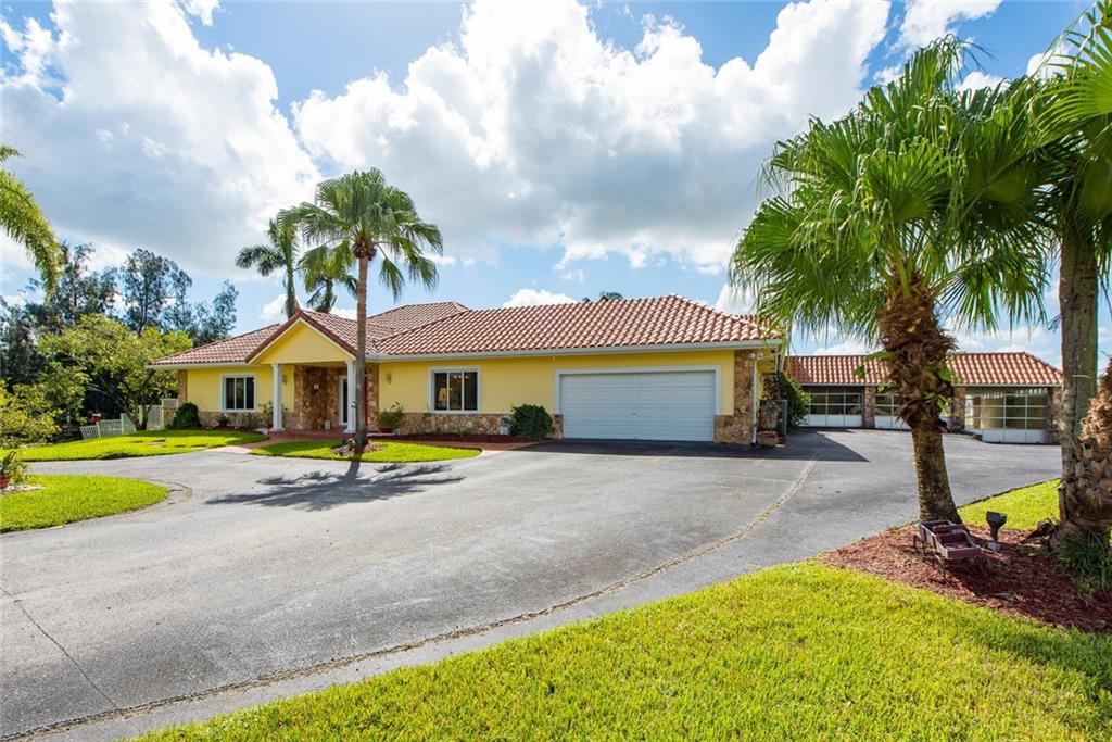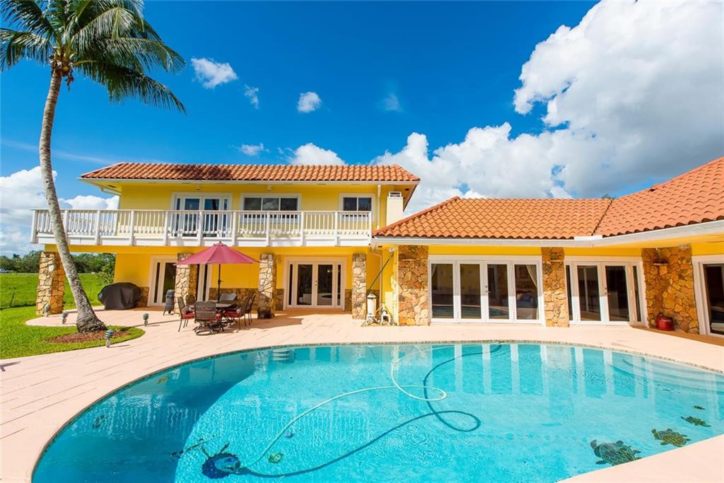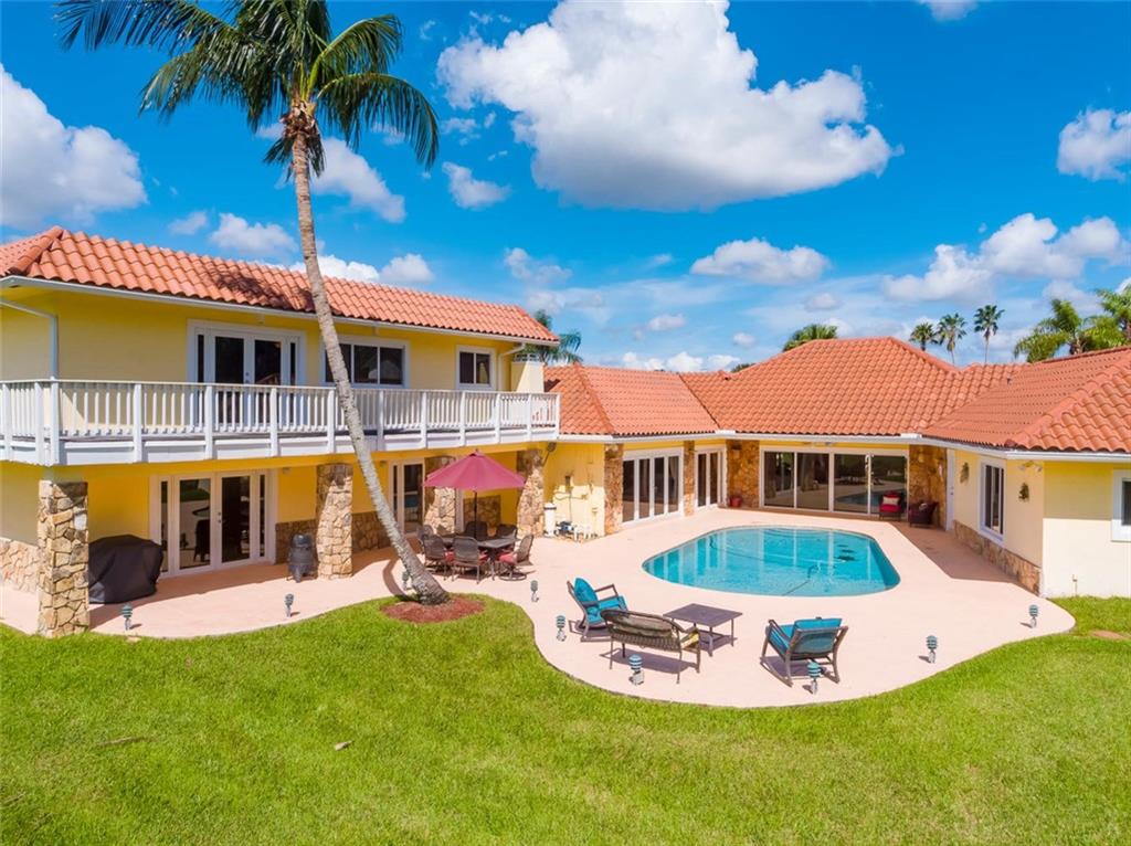 This spectacular Lawson Isles home has been updated from top to bottom including the kitchen, bathrooms, flooring and Impact glass doors & windows. This home has an amazing floor-plan with a formal living & dining room, family room with a wood burning fireplace and wet bar, plus a huge recreation/game room complete with a full size bar for entertaining. The kitchen has endless countertop and storage with wood cabinets, granite, stainless appliances and a huge walk-in pantry. There are two huge master bedrooms (1 downstairs & 1 upstairs). Both master bathrooms have a Jacuzzi, frameless shower & dual sink vanities. The 1.13 acre lot has a salt system pool, pond & an array of palm & fruit trees (Banana, Mango, Tangelo, Lemon & Lime). There's a 2 car garage & 6 car garage that fits a RV/Boat.