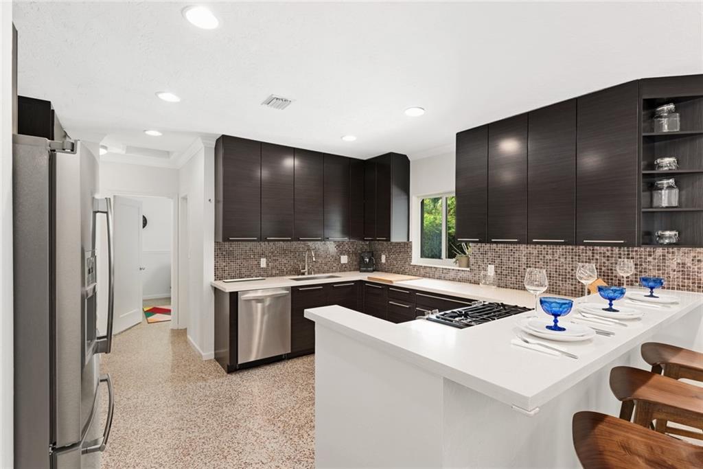 Your Victoria Park home awaits! Come experience this wonderfully updated bright home w/ guest cottage & pool. Newer stone paver drive for plenty of parking options. The main residence offers gorgeous open plan w/ restored Terazzo flooring, functioning fireplace, new bamboo in master & impact windows & doors. Master suite enjoys a modern bath. The kitchen is sharp with SS appliances, gas range, deep sink, wine fridge & pantry. Through impact french doors you find a fresh wood deck w/large heated pool surrounded by Travertine tile offering lots of space to entertain & relax. Separate guest cottage w/kitchenette, bedroom & living space. Easy walk to all the newest hotels, bars & bistros in Flagler & Las Olas. Enjoy a pleasant bike ride to the beach or quick trip to the train, airport & ports.