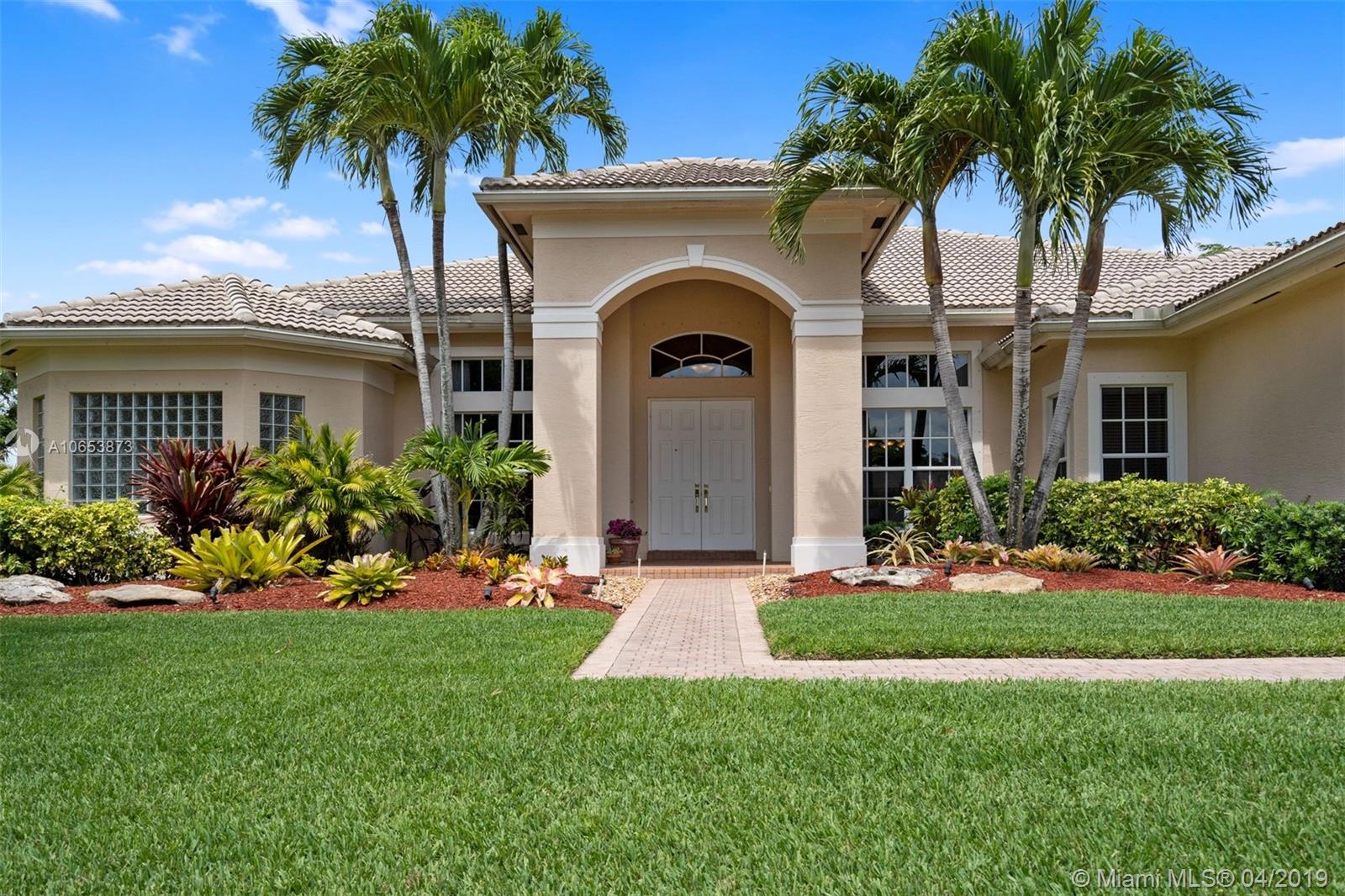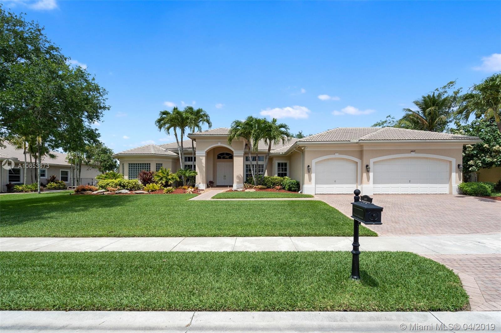 Spectacular Home a must see. One story 4/4 plus Den/Office and 3 car garages in the prestigious Riverstone Gated Community. This beautiful Waterfront House is the gorgeous Model residence Three-A with Lake views and perfectly located in the private cul-de-sac street the ideal area for the safety of the kids. The property features open concept floor plan with crown molding, chef gourmet large Kitchen, Spacious Master Suite with a newly remodeled shower in the master bathroom with dual vanities, and Roman Tub. Full Cabana Bathroom, tile throughout with high ceilings. Generator Switch, fenced yard on the patio and Security System. Riverstone offers resort-style amenities including a party pavilion, basketball, tennis courts, playgrounds, surrounding Park plus A+ rated schools.