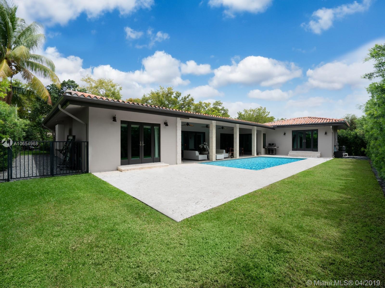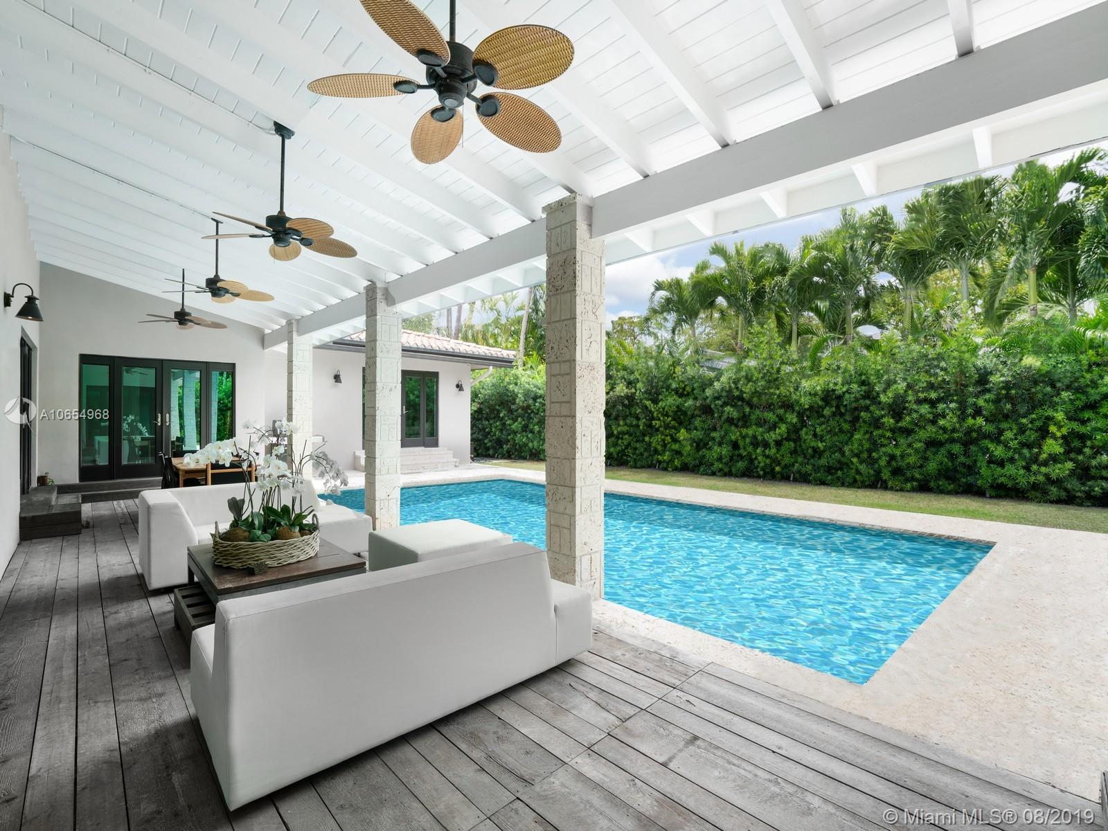 Move right in! Turn-key, completely updated one story home in South Gables/ Coconut Grove border with exquisite designer finishes. Ideal split floorplan featuring light filled open spaces, spectacular eat in kitchen with top of the line appliances and beautifully appointed bathrooms. Sliding doors open to amazing outdoor area with huge covered terrace and sun filled pool. Master suite features oversized custom closets and luxurious bath. Spacious laundry area and bonus room with full bath. Walking distance to kids park. Truly a must see!
