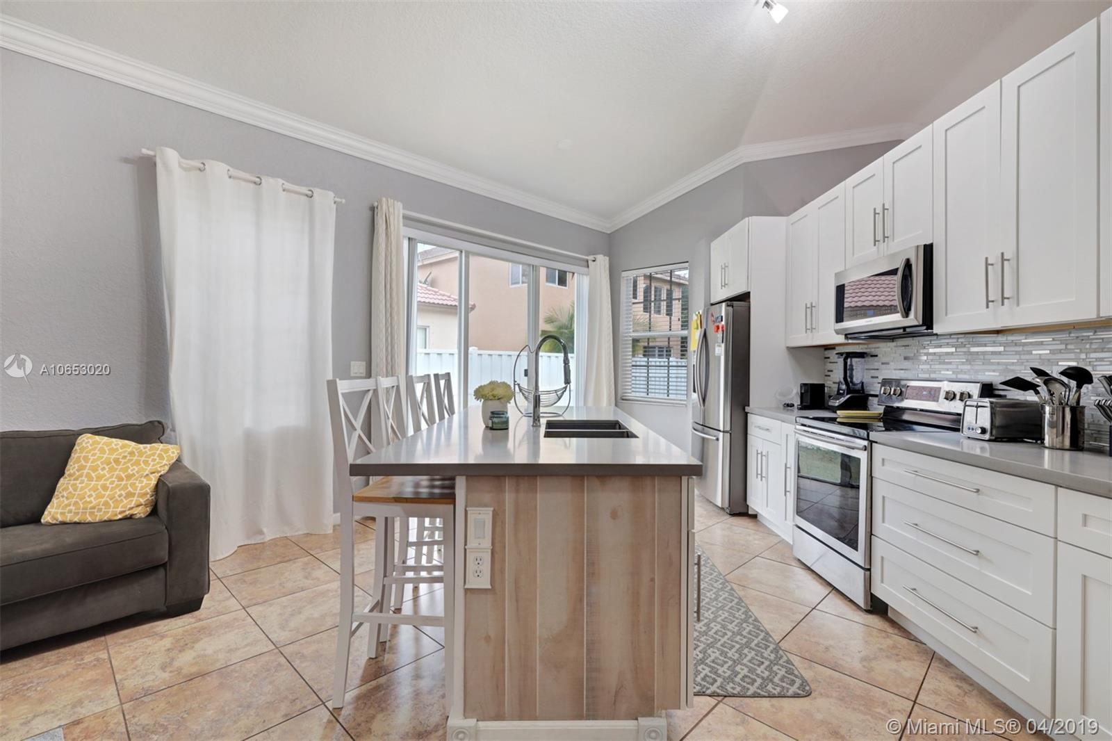 Enjoy the comfort of this well maintained home with 3BR/2BA and 2-car garage in the highly sought after Monarch Lakes community. In this split bedroom plan home, you’ll find a living area with neutral colored tiled floors and a stunning white kitchen equipped with stainless steel appliances, Quartz counter tops, and large island with storage and seating for 4. You will also find a formal living room, dining room, as well as a family room off of the open kitchen. On one side of the home, you will find the master bedroom with two walk-in closets and master bath with dual sinks, garden tub and separate shower. On the opposite side, two space bedrooms and remodeled full bathroom. The outdoor space includes a covered patio. Great community with low HOA dues of $125.