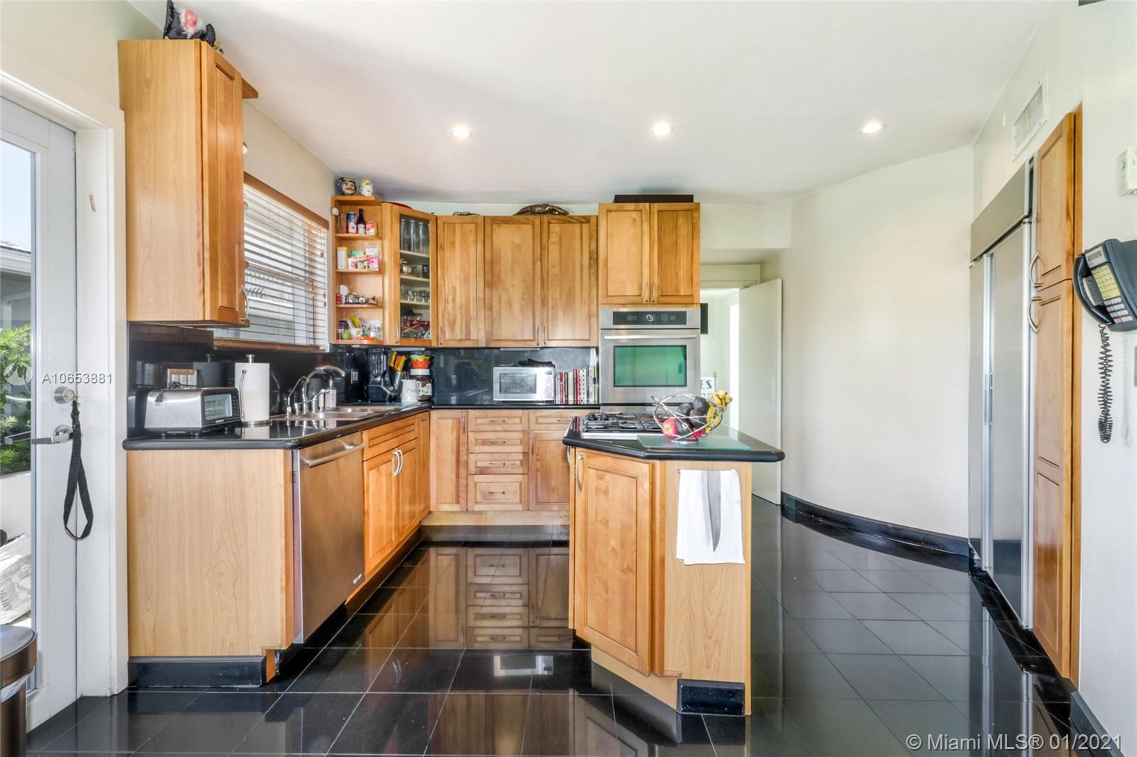 Large waterfront art-deco style home in Miami Beach. Spacious 7 bdrm 7 bath built in 1948 by Norman Giller. Includes studio guesthouse with separate entrance and personal kitchen atop a 2-car garage with extra storage space. Located on quiet Lakeview Drive, just steps from the park and minutes from South Beach. 75 ft of waterfront footage.