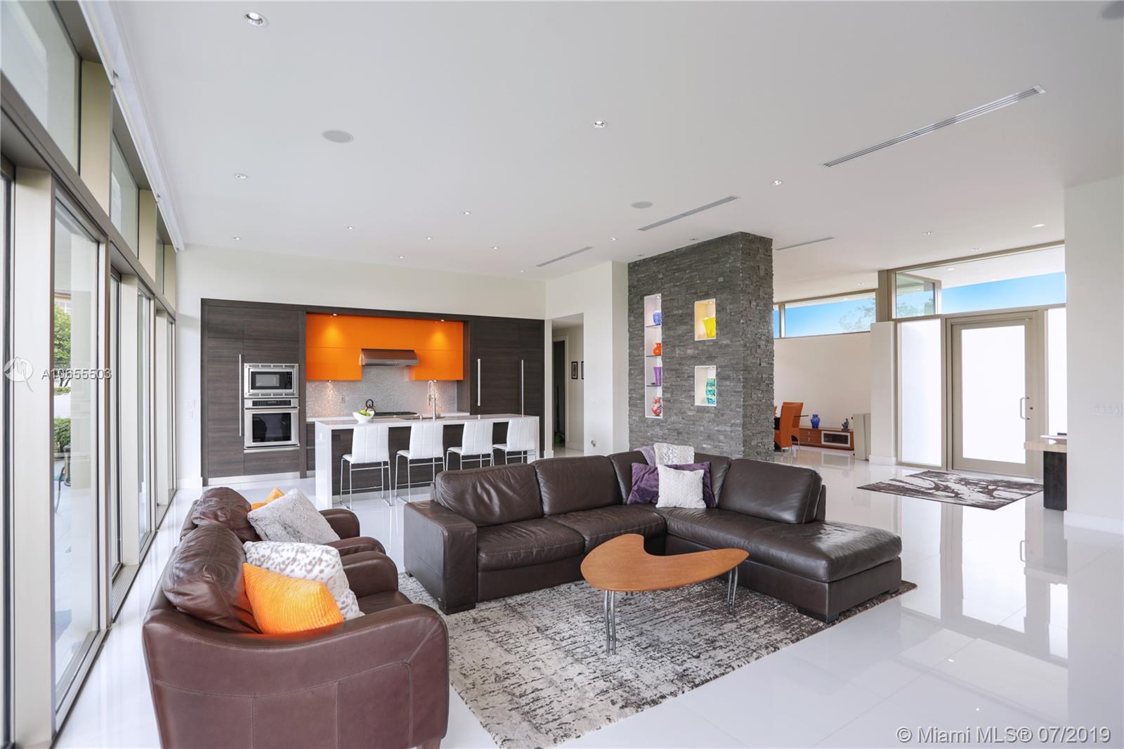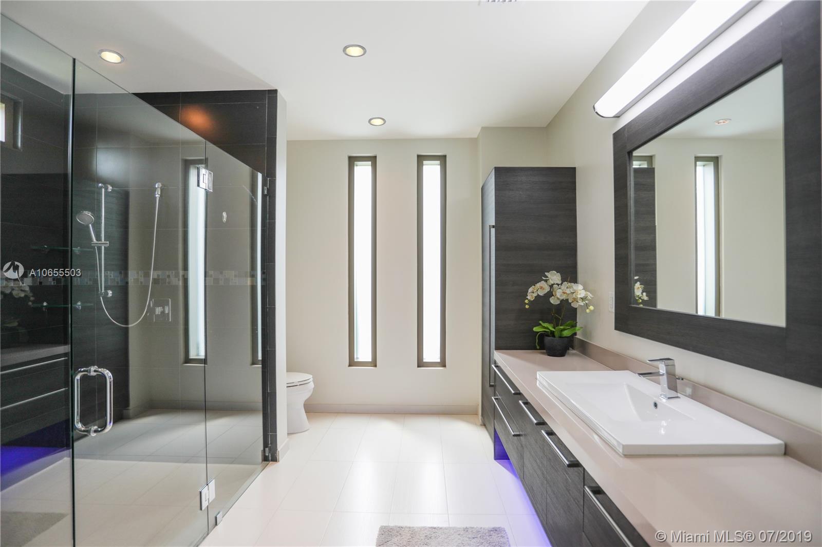 Chic ultra-modern design, with personal architectural touches and custom designer finishes. This home was crafted with precision for the future homeowner. 4 bedroom, 4 bathroom, 2 car garage with attached guest house. Open floor plan with 36 inch porcelain glass floor, 9/16 impact windows and A/C system with linear diffuser. Gourmet kitchen featuring quartz countertops, Thermador appliances & "Salt" cabinetry. Posh master suite with a private outdoor spa jacuzzi retreat along with a sleek master bath with undermount blue lighting. Formal dining room with glass atrium scenery. Impressive in-law suite features private entrance & kitchenette. Lavish outdoor veranda showcasing the pool, peaceful lake views. This home is a must see! Unique and wonderfully made, pinnacle of South Florida Living