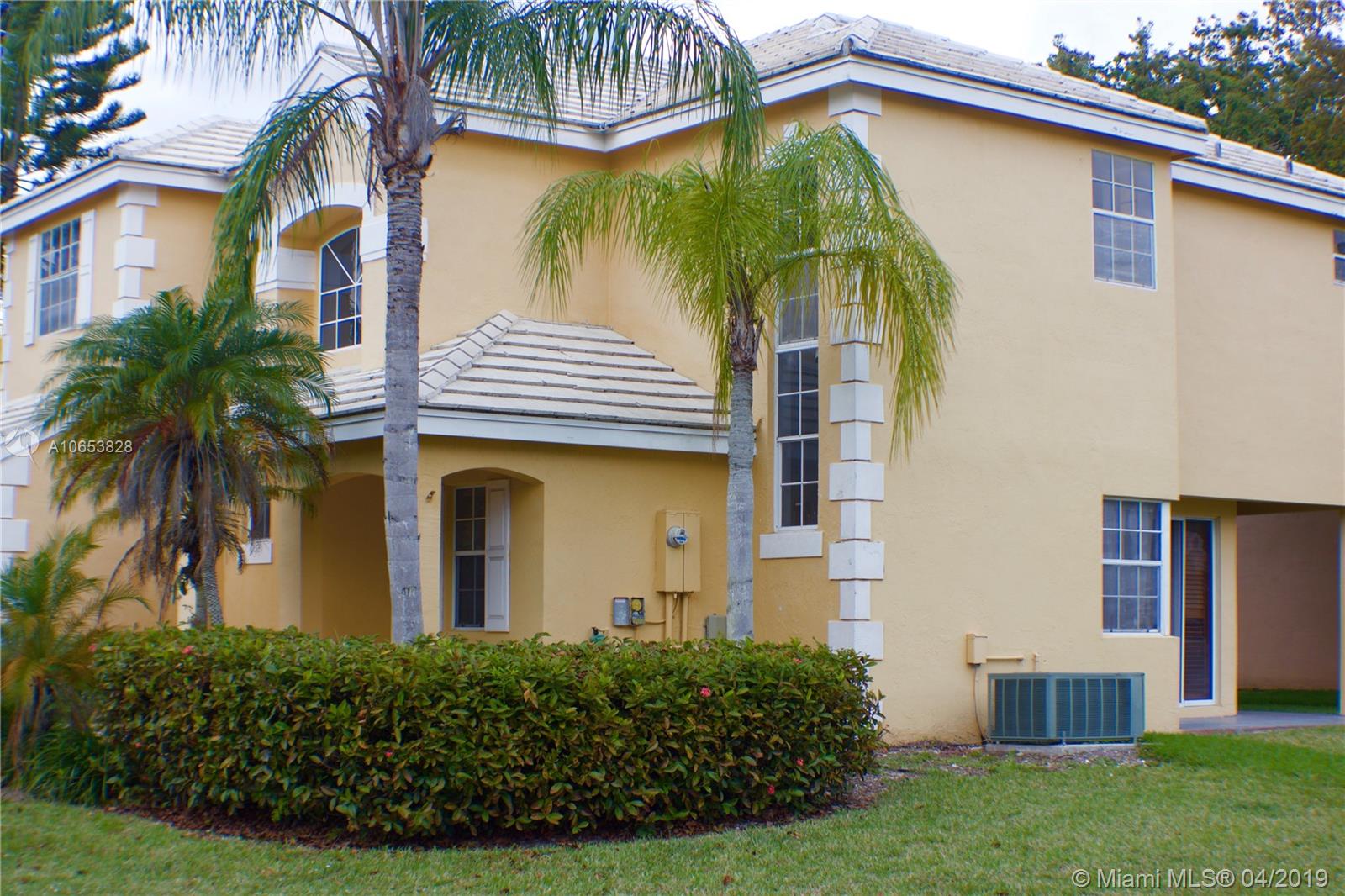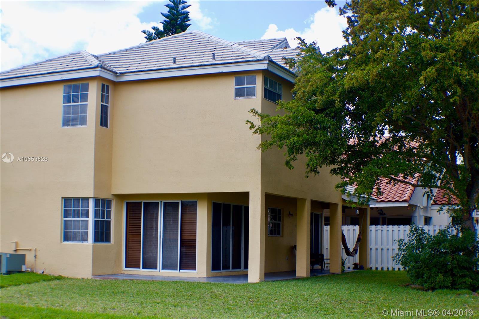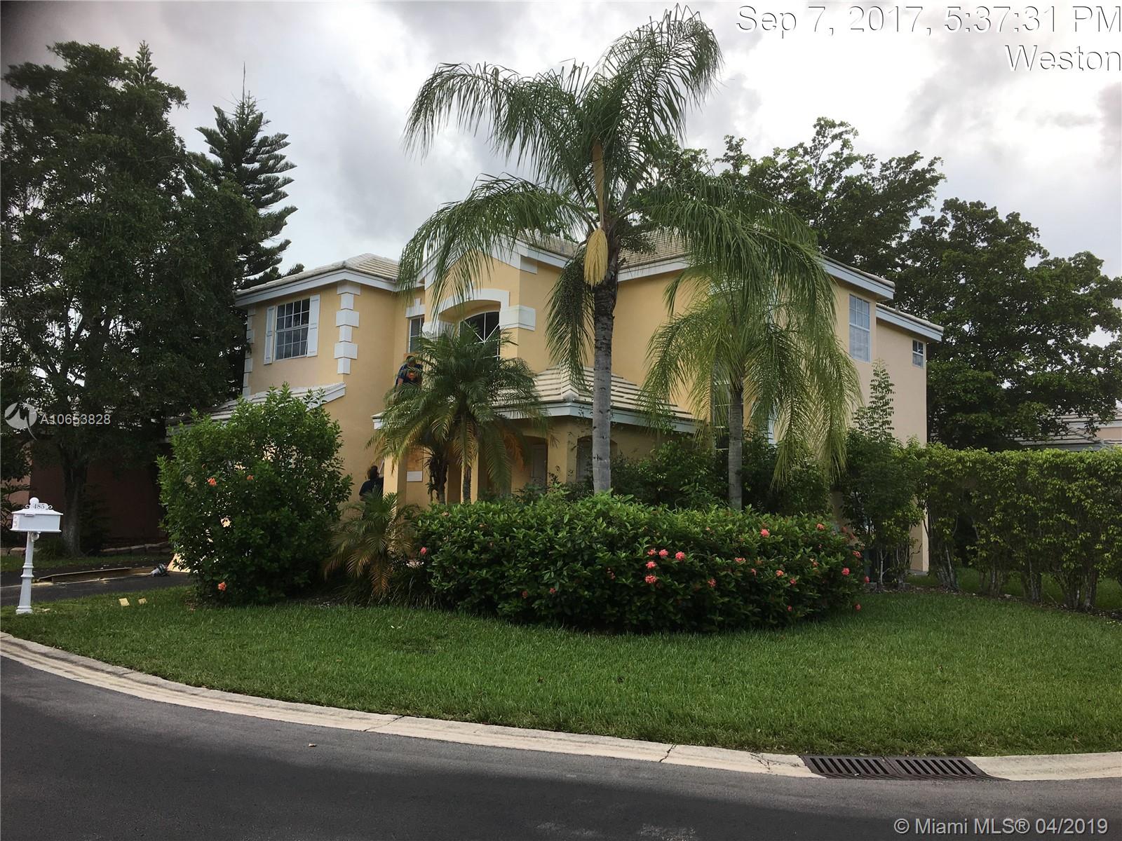 Hurry to see this charming two story home in desirable Bermuda Springs. Calling all cooks to see the upgraded kitchen with gorgeous cabinets, stainless steel appliances & granite counter tops. Kitchen is open to the family room/dining area. Tile in social areas downstairs; real wood upstairs on landing & all three bedrooms; carpet on stairs. All three bedrooms upstairs. A shower was added to the first floor half bath making this a true 3 bedroom, 3 bath home. Walking distance to Indian Trace Elementary. All A-rated Weston schools. Great community amenities: community pool, tot lot and half basketball court. Gated and low HOA. Very well maintained community.