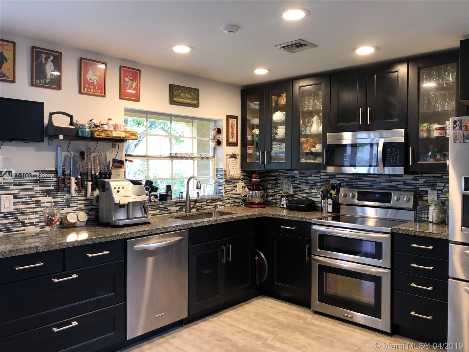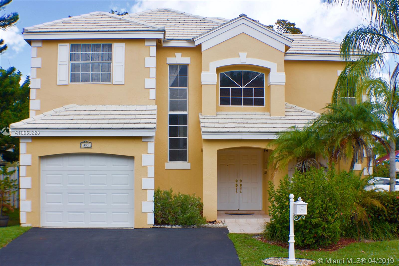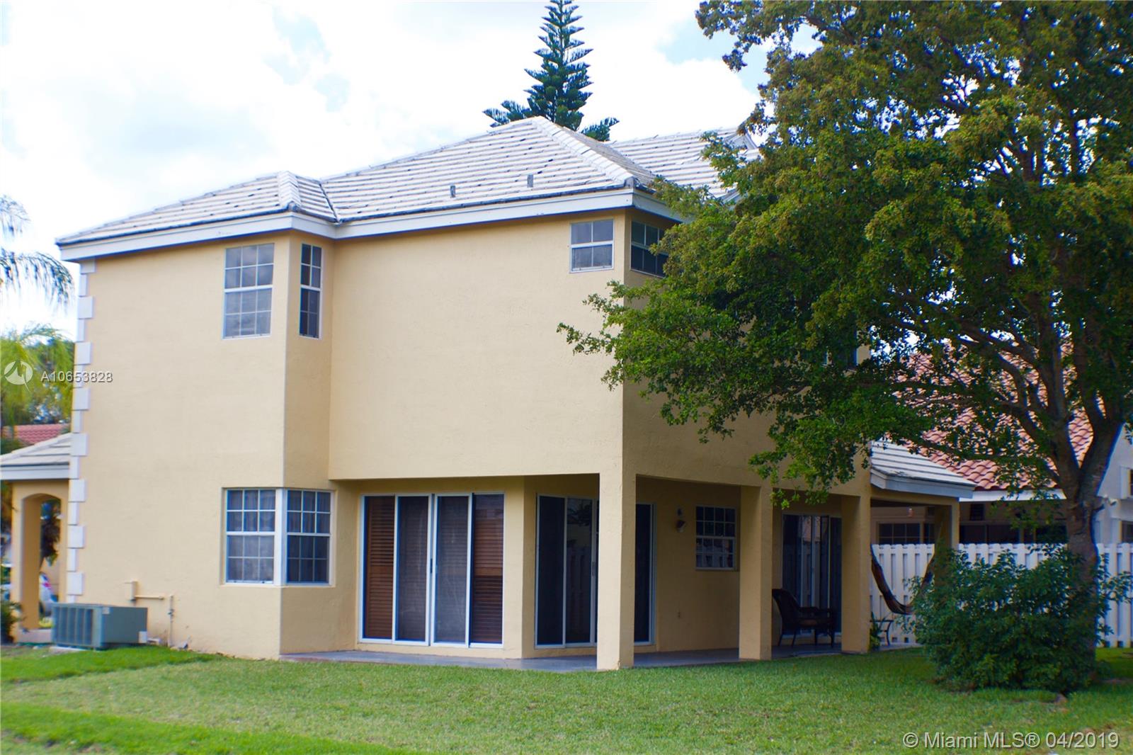 Hurry to see this charming two story home in desirable Bermuda Springs. Calling all cooks to see the upgraded kitchen with gorgeous cabinets, stainless steel appliances & granite counter tops. Kitchen is open to the family room/dining area. Tile in social areas downstairs; real wood upstairs on landing & all three bedrooms; carpet on stairs. All three bedrooms upstairs. A shower was added to the first floor half bath making this a true 3 bedroom, 3 bath home. Walking distance to Indian Trace Elementary. All A-rated Weston schools. Great community amenities: community pool, tot lot and half basketball court. Gated and low HOA. Very well maintained community.