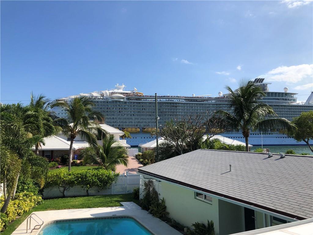 Exquisite find in coveted Harbour Inlet--almost a 1/4 acre corner lot w/ views of the port & cruise ships & walking distance to the beach! This 3 bed/3.5 bath home is located close to the Ft. Lauderdale beach, Las Olas shopping, the airport & waterfront dining. Extensive remodel completed in 2013 included new hurricane windows/doors/garage door, new electrical, new plumbing, new a/c ducts, new kitchen, new baths, fencing, irrigation system & more! This cottage style home features vaulted wooden ceilings, 2 masters-one up & one down, oversized pool-a swimmer's delight, an elevated lot to minimize flood risks & beautiful tropical landscaping for the yard enthusiast. Relax on your balcony in your private tropical oasis & wave BonVoyage as towering cruise ships depart. Paradise!