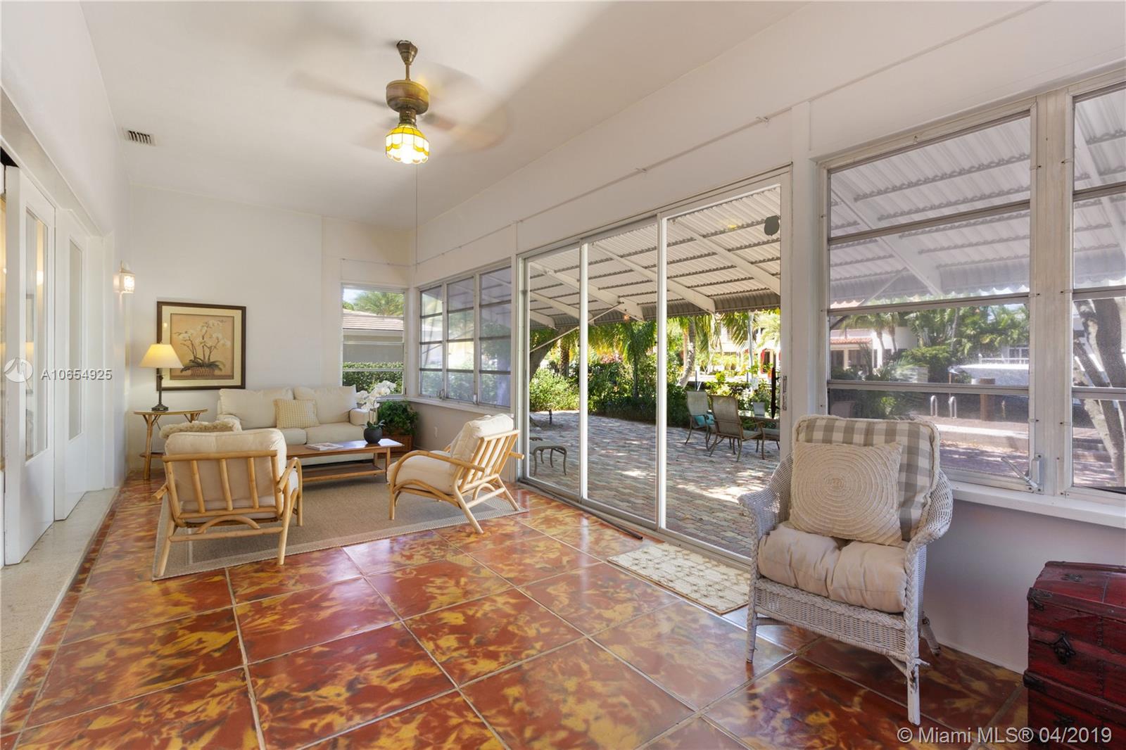 Rarely does a S. Las Olas Isles true mid century modern home on a Sailboat Depth Street become available. 1946 Architecture by renowned Nels S. Jacobson, who has property listed on the National Register of Historic Places. Spectacular boaters’ property offering 100’ deep water dockage, Seawall Updated in the 90's, quick ocean access, no fixed bridges. Incredible waterway views of all gorgeous newer homes, mature landscape, on palm tree lined cul-d-sac street, easy walk to beach, shops, dining. Split floor plan w/ AC Florida room leads to expansive yard; easily accommodates pool. Upgrades incl: volume ceilings, T&G detail, architectural fireplace, corner windows & original terrazzo floors w/ brass inlay. Pavered backyard & circular driveway. 2 car garage. Enjoy vibrant Ft. Lauderdale now!