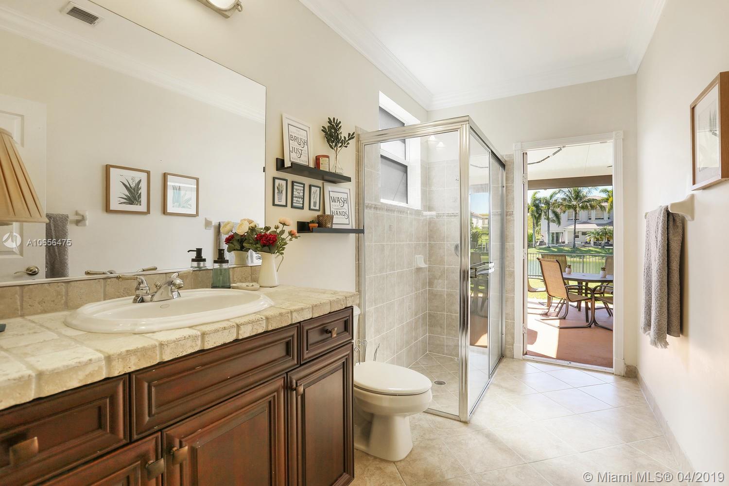 Located in the sought-after guard-gated community of Riviera Isles, this waterfront home has it all! Cathedral ceilings top the wide open floor plan with areas for formal and casual gatherings. A covered waterside patio allows comfortable outdoor events with a view! Expansive master suite with sitting area is located upstairs along with 2 additional bedrooms and Jack & Jill bath. The 4th bedroom and full bath are entry level no stairs required! Complete hurricane protection with accordion shutters upstairs. Riviera Isles boasts a grand clubhouse with a community pool, tennis court, sauna, fitness center, children's play area, trails and more. No HOA approval required. Call today for your private tour!