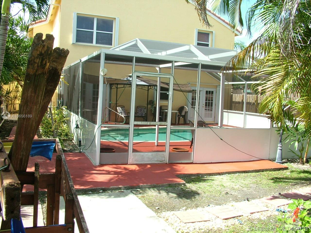 Your dream home is waiting in Miramar, Florida, a beautiful 2 story house with 1,929 sq. ft. of living area, 3 full bedrooms, 3 full bathrooms, a 2-car Garage, a pool with solar panels and a water heater, a patio screen that covers the whole pool area, a spacious kitchen with a granite counter, and updated appliances. Accordion Hurricane Shutters are located in all windows. Contains a central air conditioner. The first floor contains beautiful concrete, tiles , and the second floor has laminate wood as the flooring. It has been owned by the first buyer since 1996.