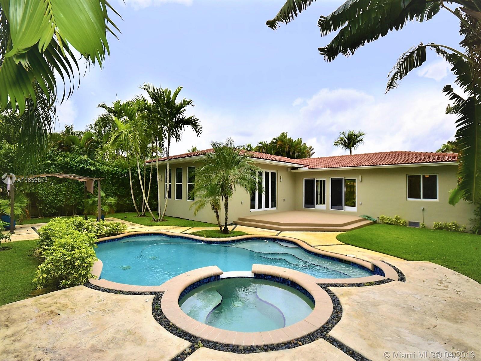 THIS EXQUISITE & GORGEOUSLY REMODELED HOME HAS IT ALL! This beautifully updated Miami Shores home features a fabulous floor plan, 3 bedrooms, 2 bathrooms, high vaulted ceilings, rich hardwood and porcelain floors, wine cooler, gas stove, impact windows, deluxe laundry room, surround sound, wireless alarm system and more. The MAGNIFICENT huge master suite, bath & walk-in closet. Light filled open living areas lead out to a gorgeous, lush, tropical backyard w/ large pool & jacuzzi. Great for entertaining! Your own PRIVATE PARADISE!