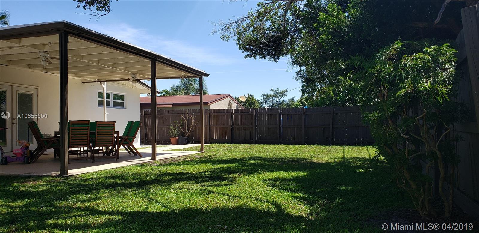 Lovely 3BR/2BA 1 Car Garage home on a quiet street with private fully fenced yard. This home features hurricane impact windows and front door, a gourmet kitchen with granite counter tops, wood cabinets and all stainless steel appliances. Utility room with washer and dryer, ECO Tankless water heater. Bright open layout with tile floors in the living area and laminated wood floors in the bedrooms. Both bathrooms have been updated. Large private yard with a large porch and garden shed with power and tools included. Concrete driveway has space for up to 4 cars. Close to shopping, restaurants, schools, transportation, all expressways and the Hard Rock Casino. NO HOA.