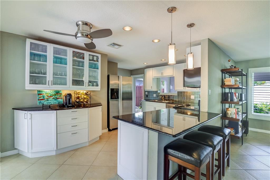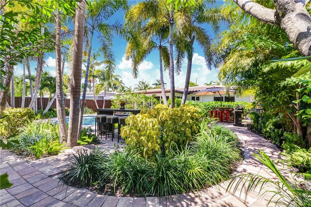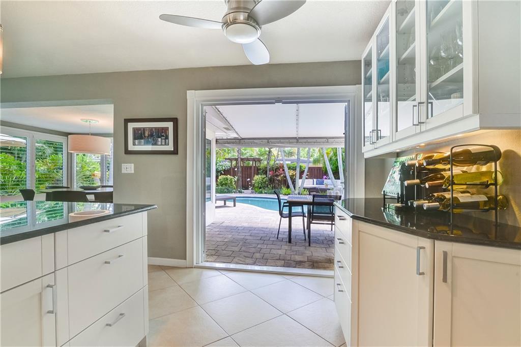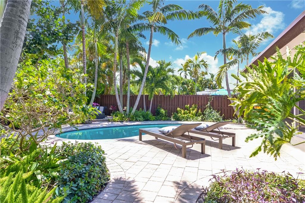 Your own private resort in highly sought after North Ridge section of Poinsettia Heights. This beautifully landscaped home, features light/neutral tile and paint throughout, outdoor bar, heated saltwater pool, and a backyard perfect for entertaining. Updated with hurricane impact windows, plantation shutters, granite counters, stainless appliances, tile roof, refinished pool, landscape lighting, irrigation system and new fencing. Indoor laundry room and carport. Close to beach and popular shopping / dining.