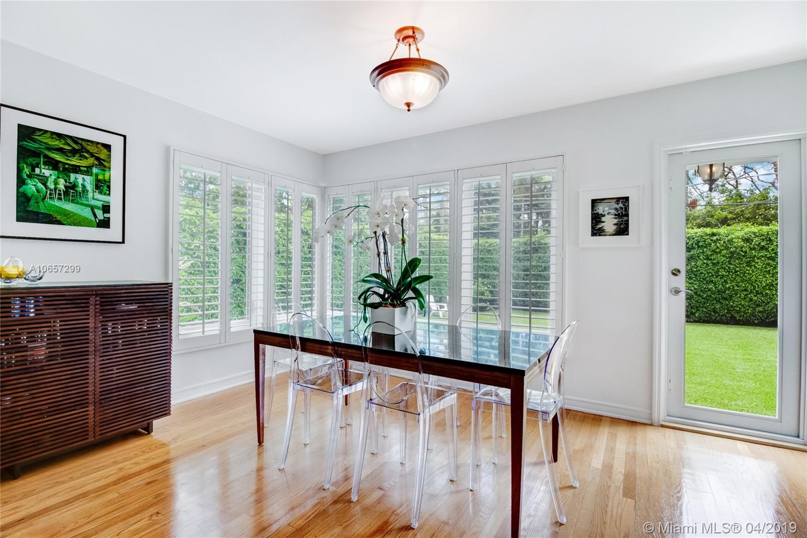 Located on a quiet tree-lined special street in the South Gables that has that real neighborhood feel. Great curb appeal from the mature landscaping, paver driveway, brick walkways and inviting front porch. Beautifully renovated with wonderful details starting with wood floors to create a perfect canvas for your special treasures. Great room with adjoining sun-filled dining room and eat-in kitchen. Large back yard with lots of room for a pool and open green space. Impact glass. Generator. Garage. Call today!