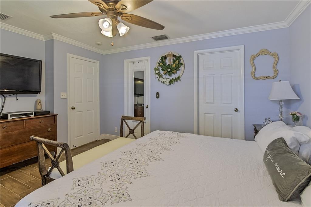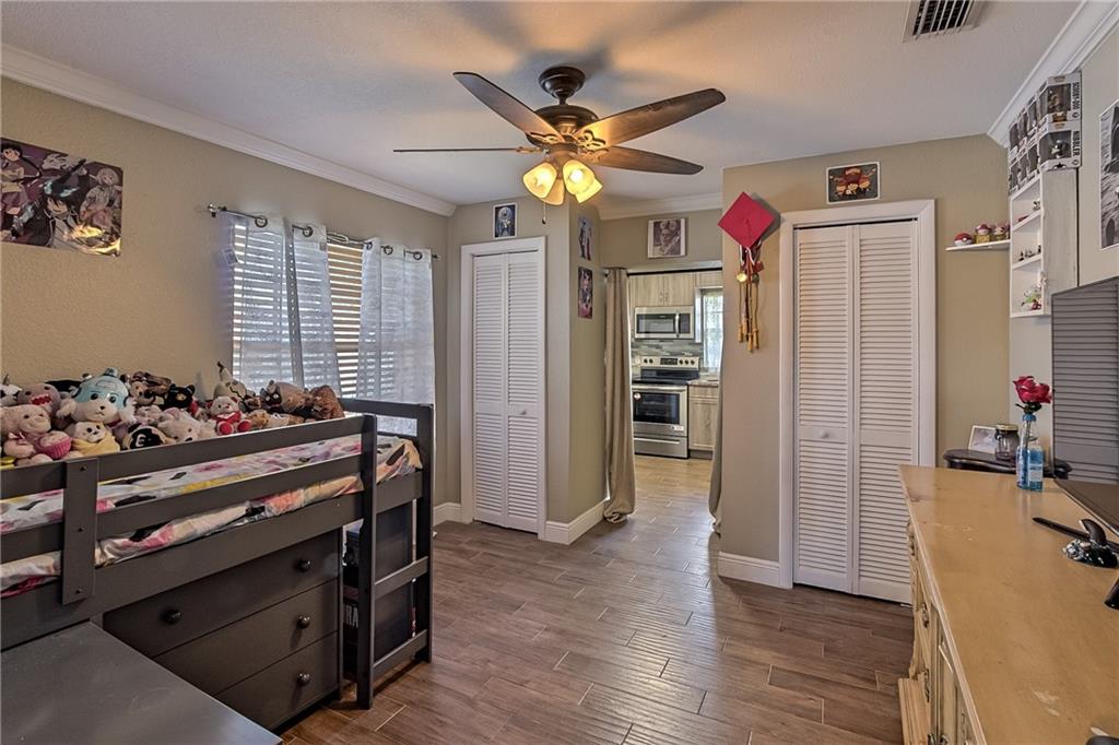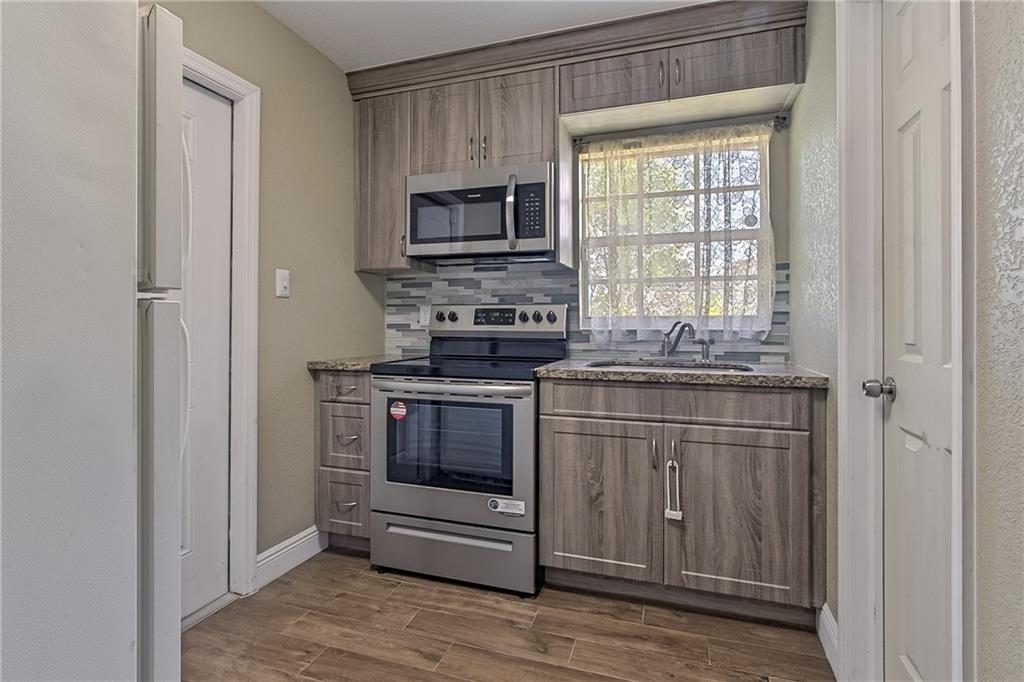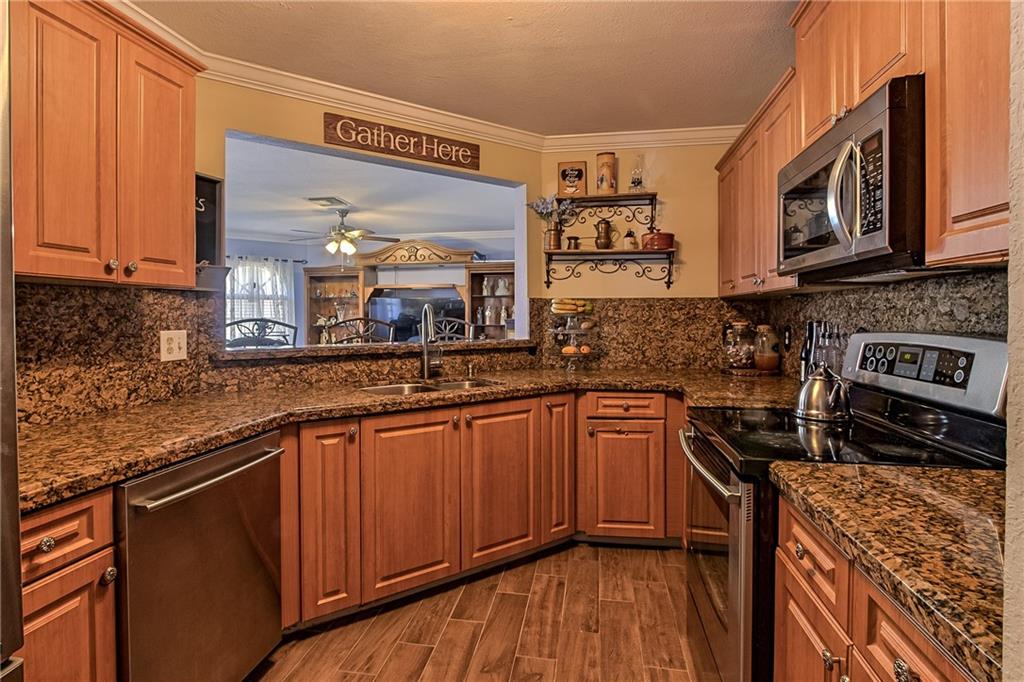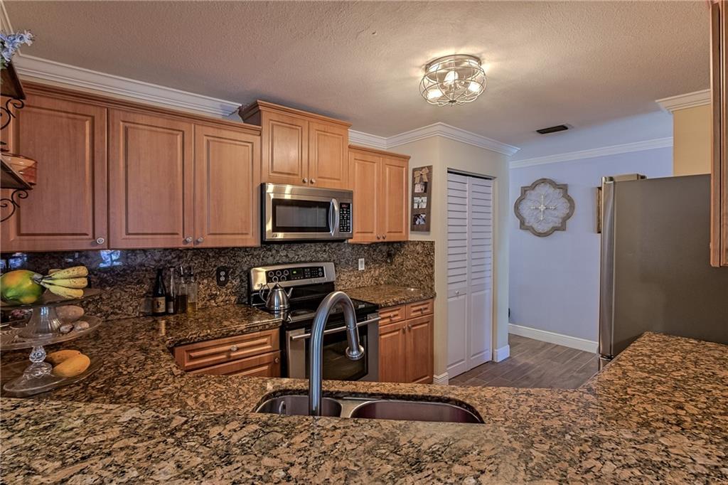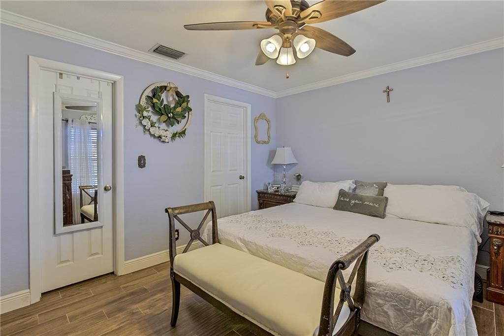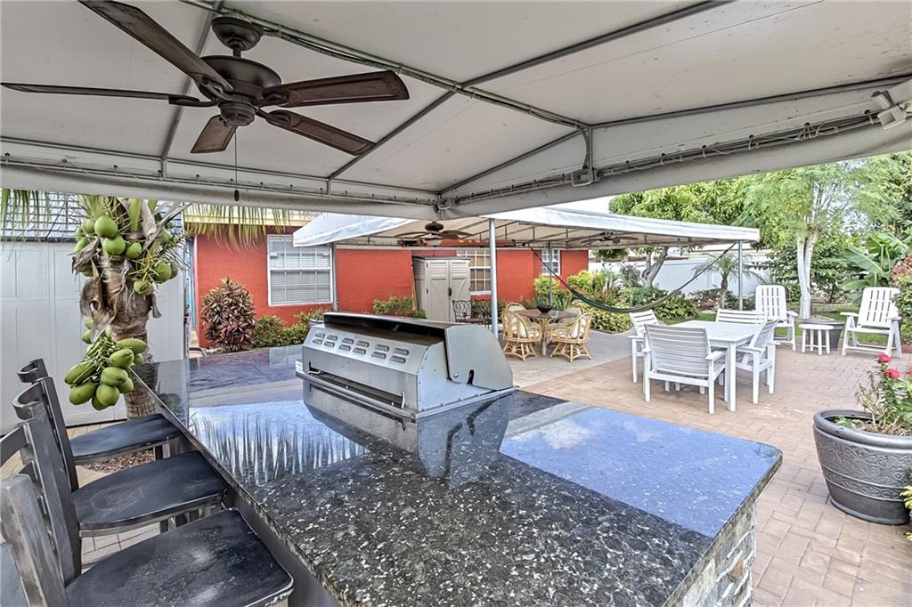 Lovely and meticulously maintained 04 bed/03 bath home located on cul-de-sac. Interior features tons of upgrades, porcelain tile, engineered wood flooring in bedrooms, crown molding throughout, dual sinks in master bathroom and guest bathroom, granite countertops in kitchen and bathrooms. Den converted into fourth bedroom en-suite/mother-in-law quarters efficiency with private entrance. Exterior features fantastic spacious paved patio with lots of elbow room and extra seating for entertaining around terrific built-in barbecue grill, all surrounded by luscious landscape and mature trees, plus paved driveway. It will not last long!!