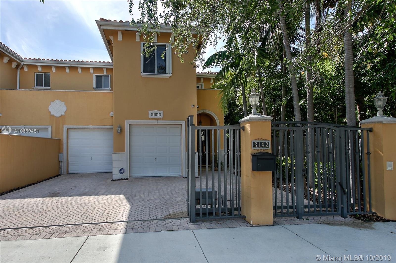 REDUCED 50K!. This three bedroom three bath home has the feel of a single family house, while you share one wall with the next door neighbor, there is no HOA, or Condo Association. The downstairs consists of both formal living and dining rooms, family room with an open kitchen concept, in addition to a full bath, making it very convenient for swimming pool use. The upstairs is a split plan, the master suite is quite large, it features two walk in closets, as well as a linen closet. The laundry room is located upstairs, it includes a laundry tub. Backyard is walled for privacy and the front is gated for privacy and security. Live in the heart of Coconut Grove, walk to restaurants, shops, or the Bay.