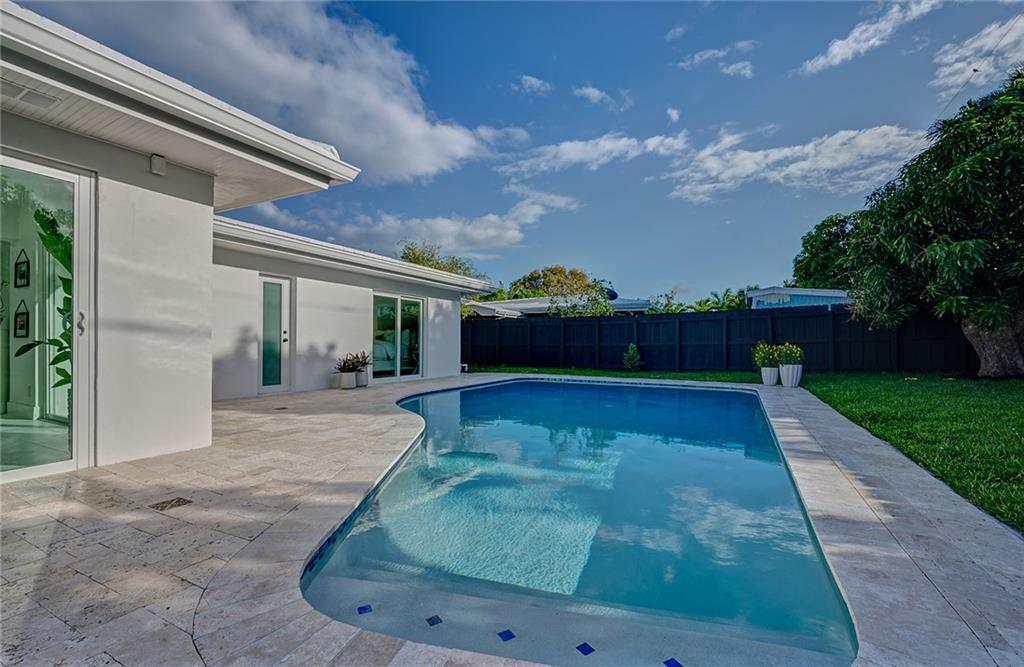 Welcome Home! 3Bedrooms + Office/Den. located in East Fort Lauderdale , this residence has been meticulously remodeled, new upgrades include; gourmet kitchen, s/s appliances, quartz countertops, new lighting, modern tile throughout, beautifully upgraded bathrooms, all new hardware, baseboards, interior doors and laundry room, windows and doors with lots of natural light, open floorplan ideal for entertainment, bonus room/den/office, laundry room and plenty of storage, new plumbing, newly redesigned pool area, freshly landscaped and fenced in for maximum privacy, ideal location minutes away to the beach, easy access to downtown, schools and shopping. A MUST SEE !