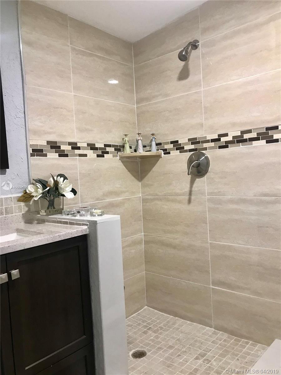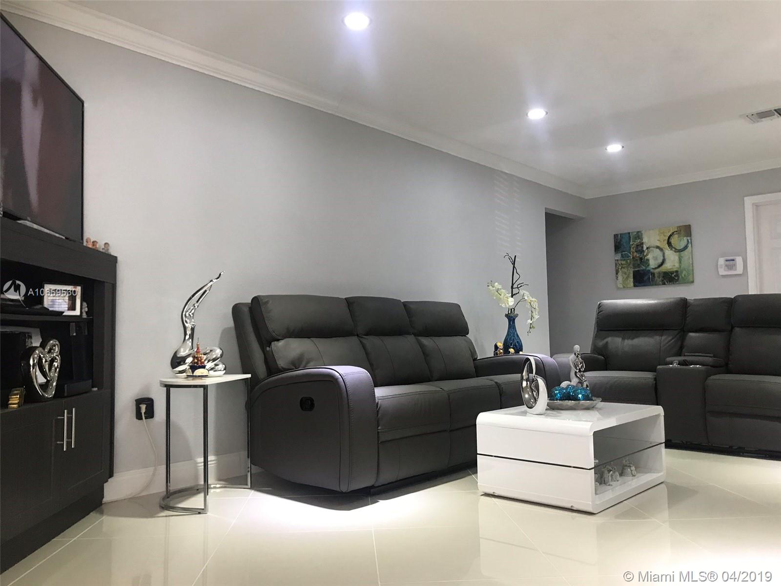 Updated single family home. Features Porcelan 24" tile, custom kitchen with spacious island & underneath storage, quartz counters, glass back splash, wine storage cabinet, soft closing drawers, stainless steel appliances, matching tv console, build in closets, led lighting, newer roof, concrete stamp spacious back yard with built in lighting, reflectors and electrical, impact back windows, french doors. Brand new bathroom with shower. Bedrooms are spacious. It has a newer roof, insulated walls, crown molding, front door with lock system.. Cameras are included. Has lots of natural light. Separate laundry room. This property is beautiful and move in ready. In the heart of Pembroke Pines, no HOA fees, close to the new Pines Center, hospitals, parks, highway, grocery. Will not last!
