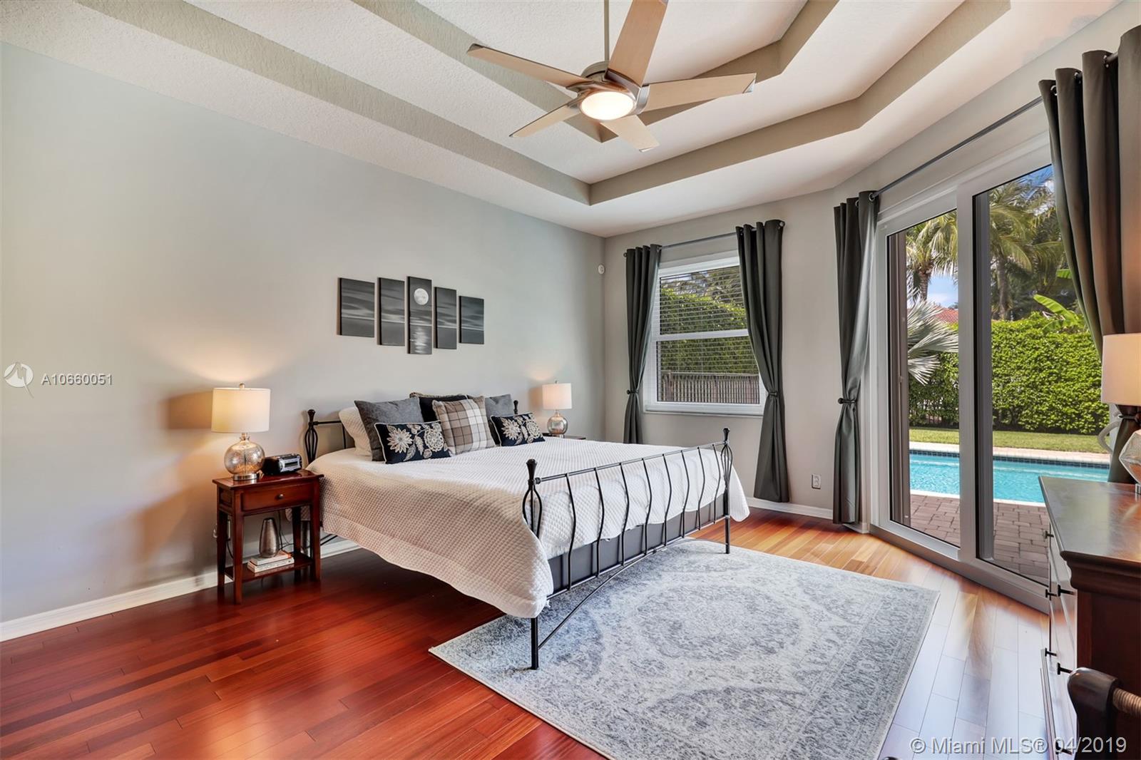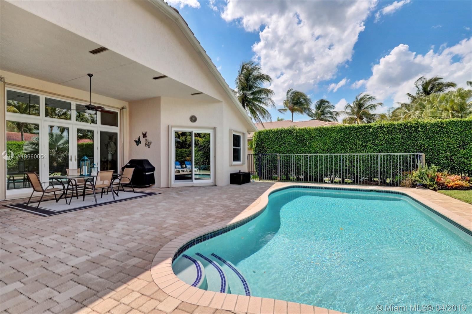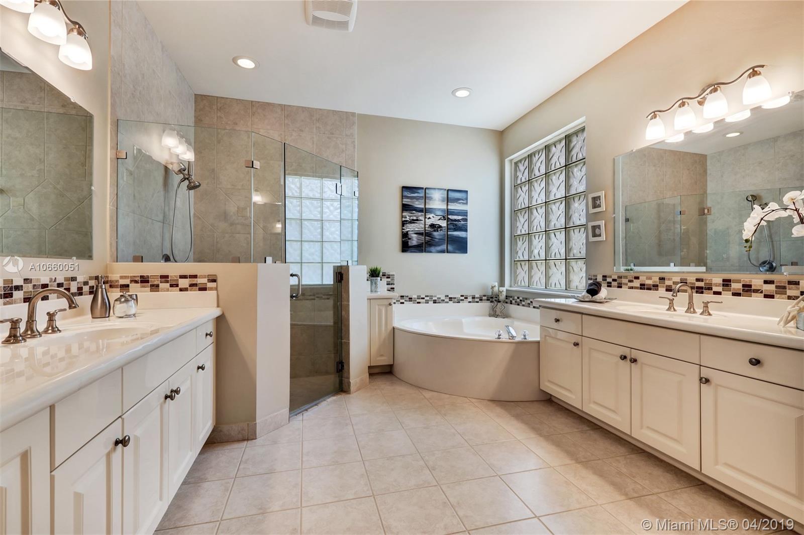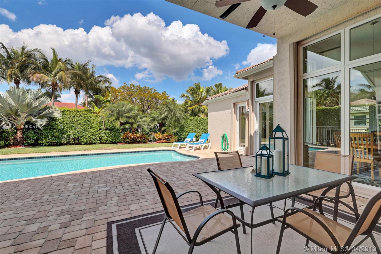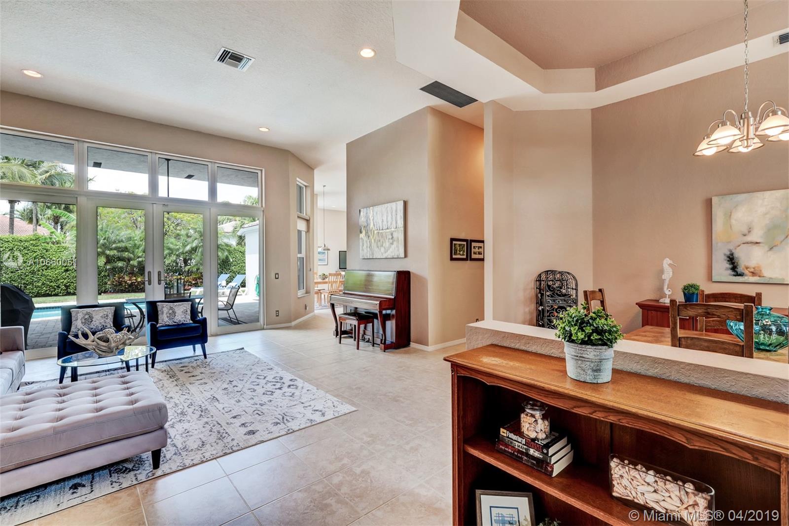 Custom built 3-way split floor plan offers 5BR/4BA/3-car garage. Brick paver driveway and entryway. PGT Premiere Vinyl Impact glass window and doors with Low-E glass (2015) plus accordion shutters. Freshly painted interior and exterior (2019), Ceramic tile floors in social areas; engineered wood flooring in MBR and one bedroom and laminate floors in 3 bedrooms. Newer stainless steel kitchen appliances, wood cabinetry and granite counters. Very private backyard, saline chlorinated (2018) and heated (2014) pool, diamond brited (2013). Newer 2-zone A/C (2015).